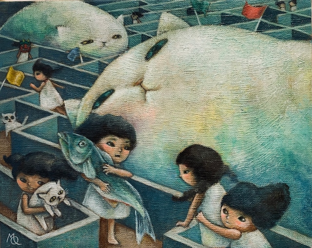 冥麿「I see you 8」額付き 楮紙にアクリル絵具、墨