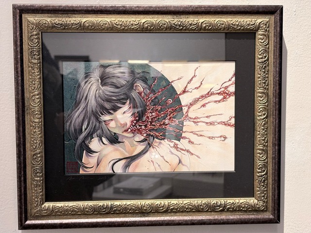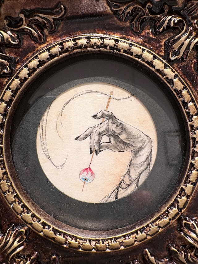 冥麿「壊咆 2A」額付き 水彩紙にアクリル絵具、玉虫箔、コピック、ミリペン