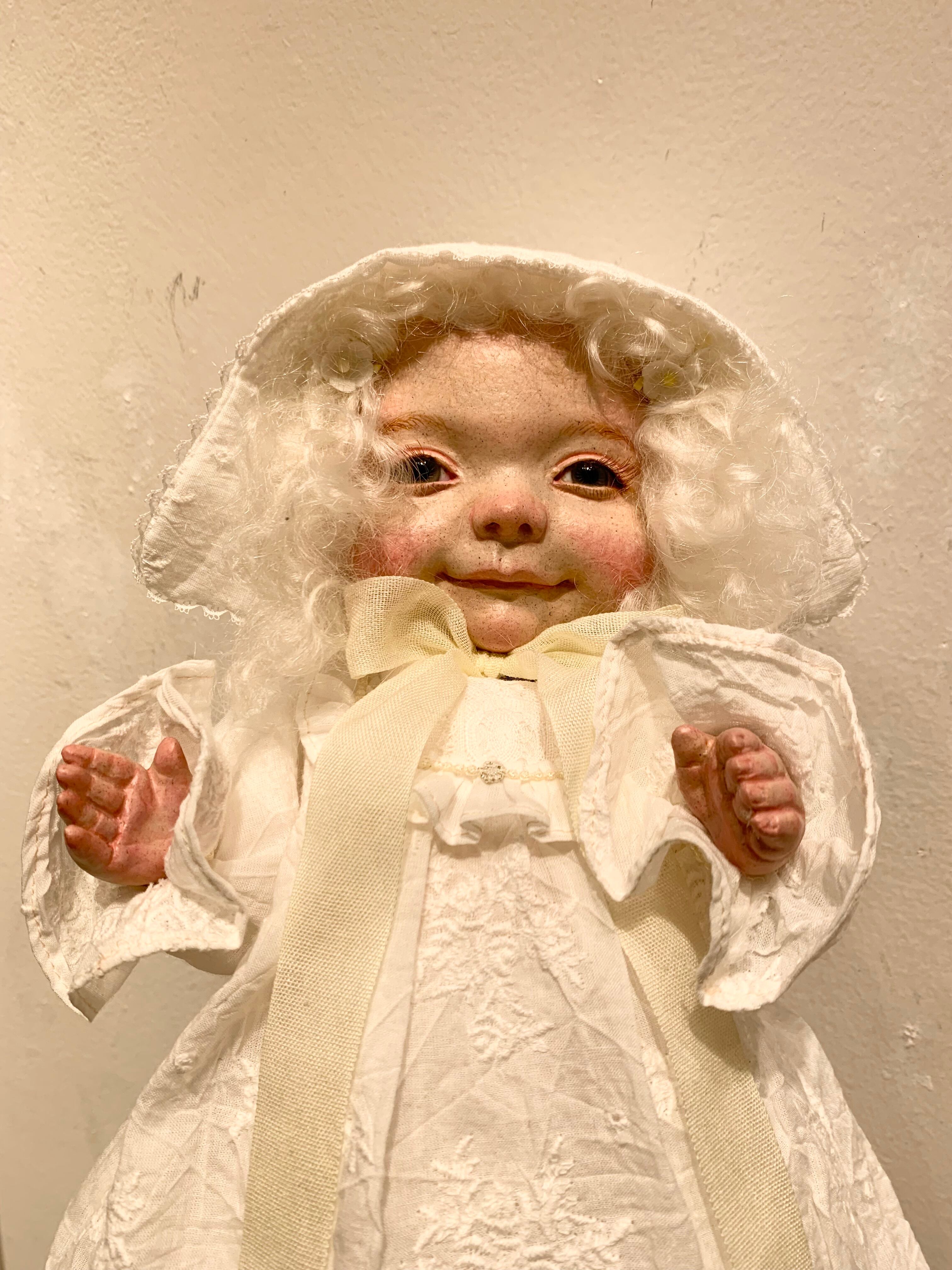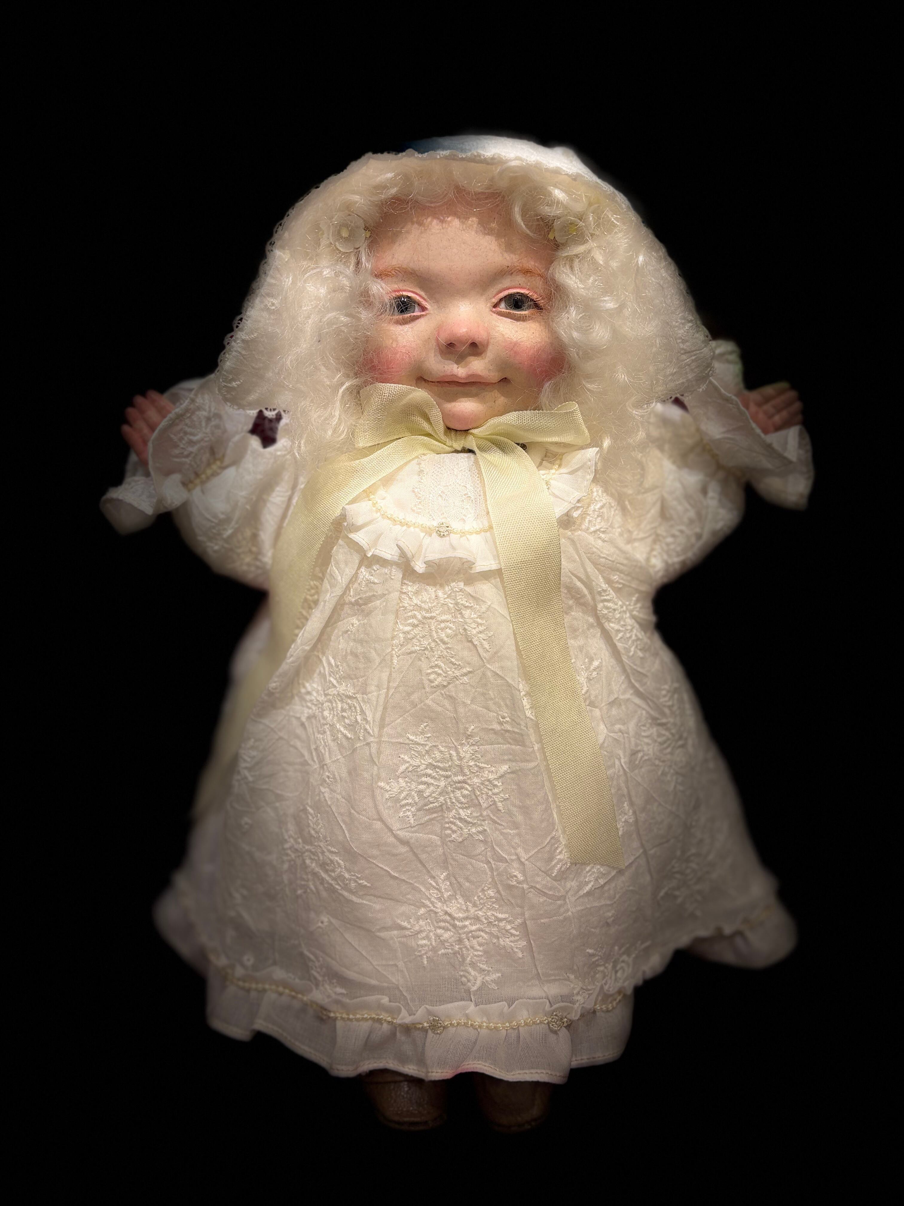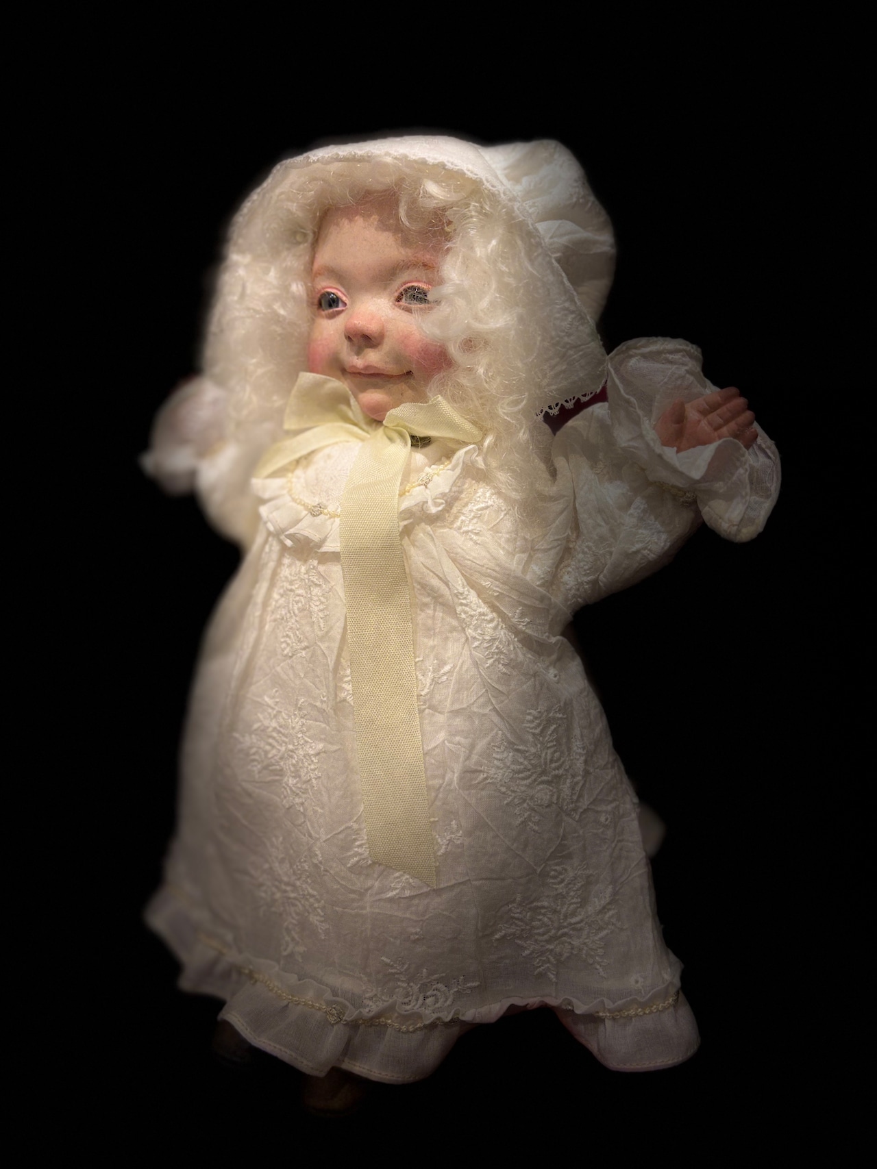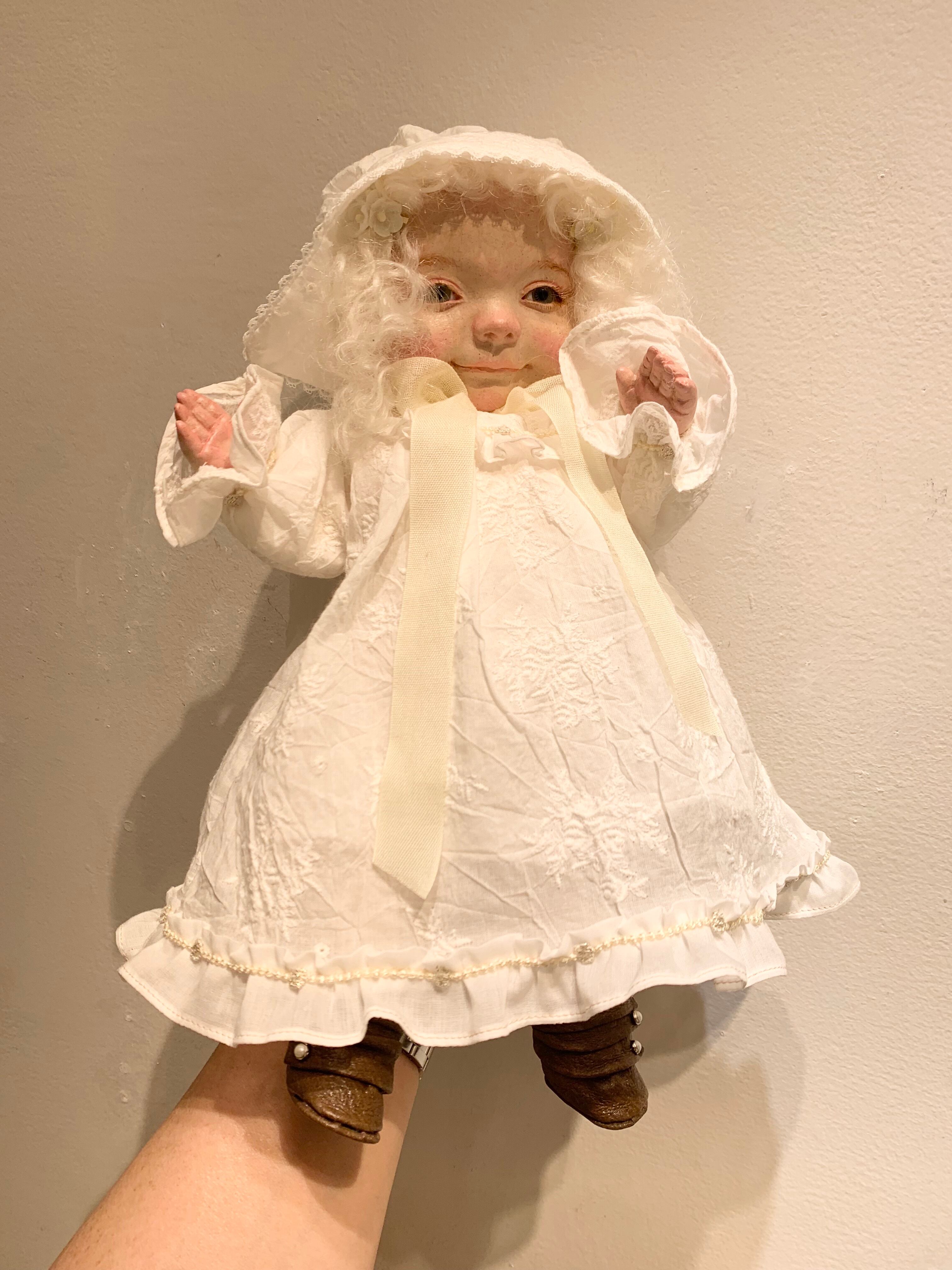 En「双子のAnu(アヌ)」35cm 石粉、木粉粘土、グラスアイ、モヘア、コットン、他 2025年