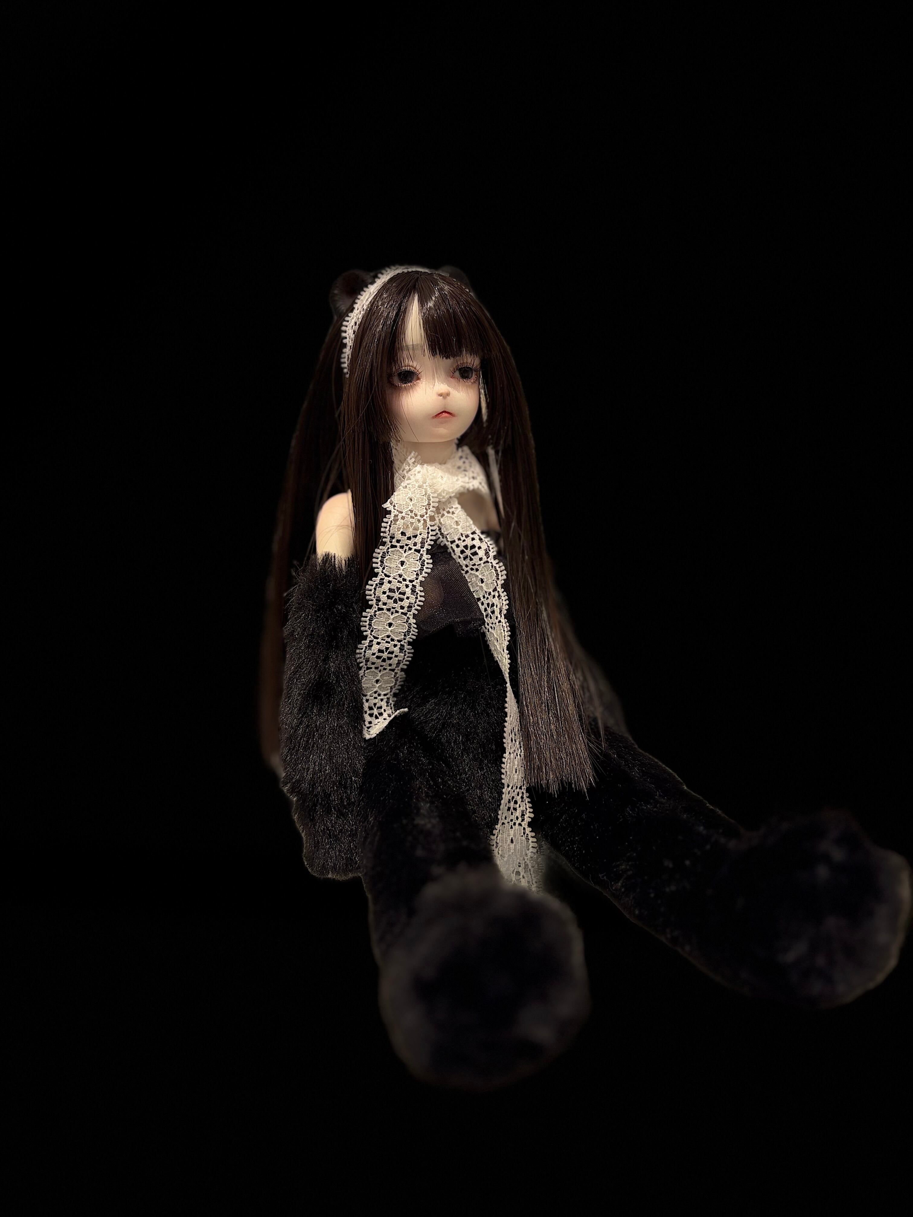 芽々木「クロル」レジン、油彩、アクリル、磁石、布、耐熱繊維 オリジナルed.1 /2025 <双子の黒い子>くまちゃんシリーズ