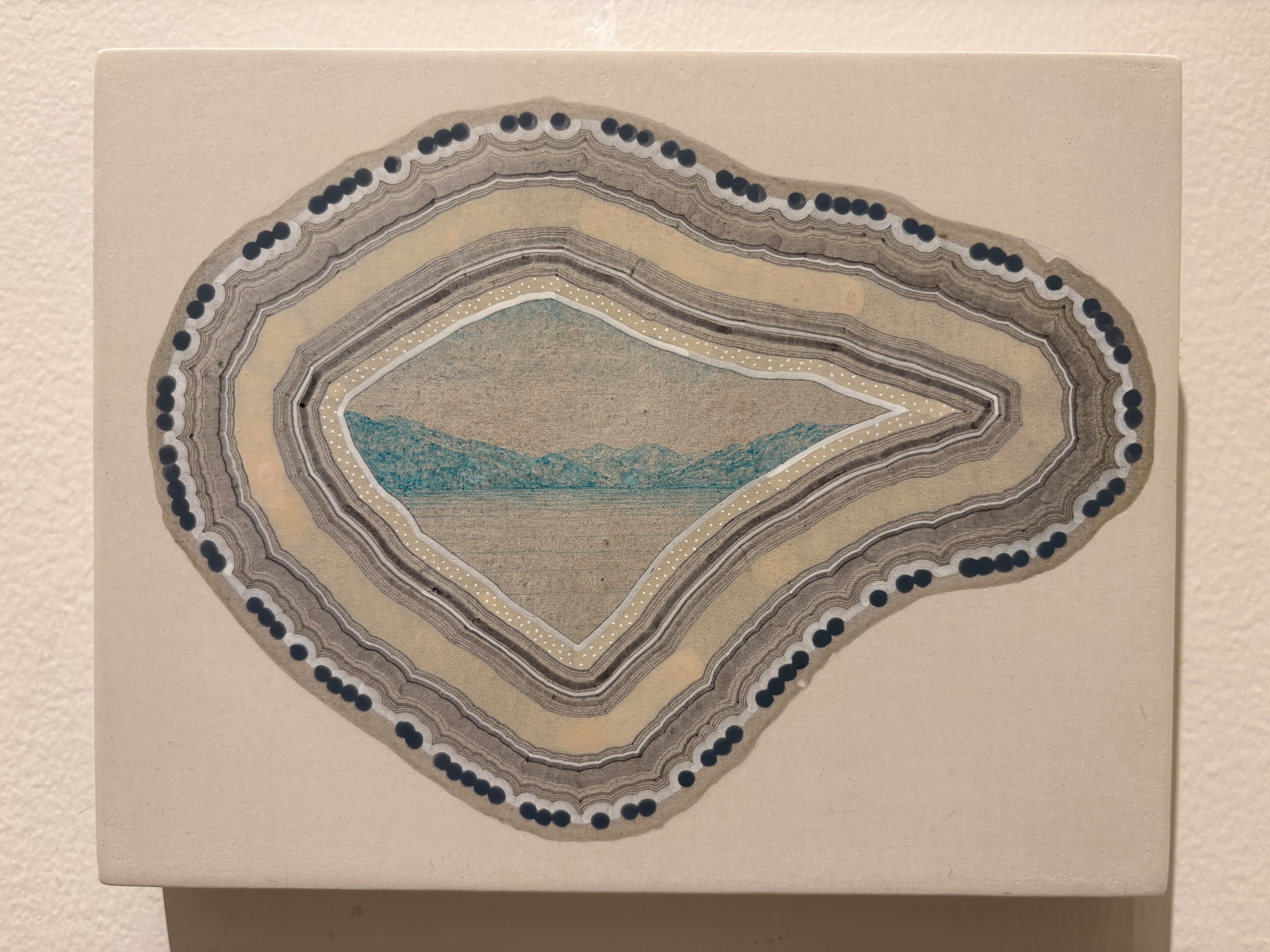 荻野沙紀「agate(薫風)」 140×180mm パネルに綿布、石膏、水彩 2025