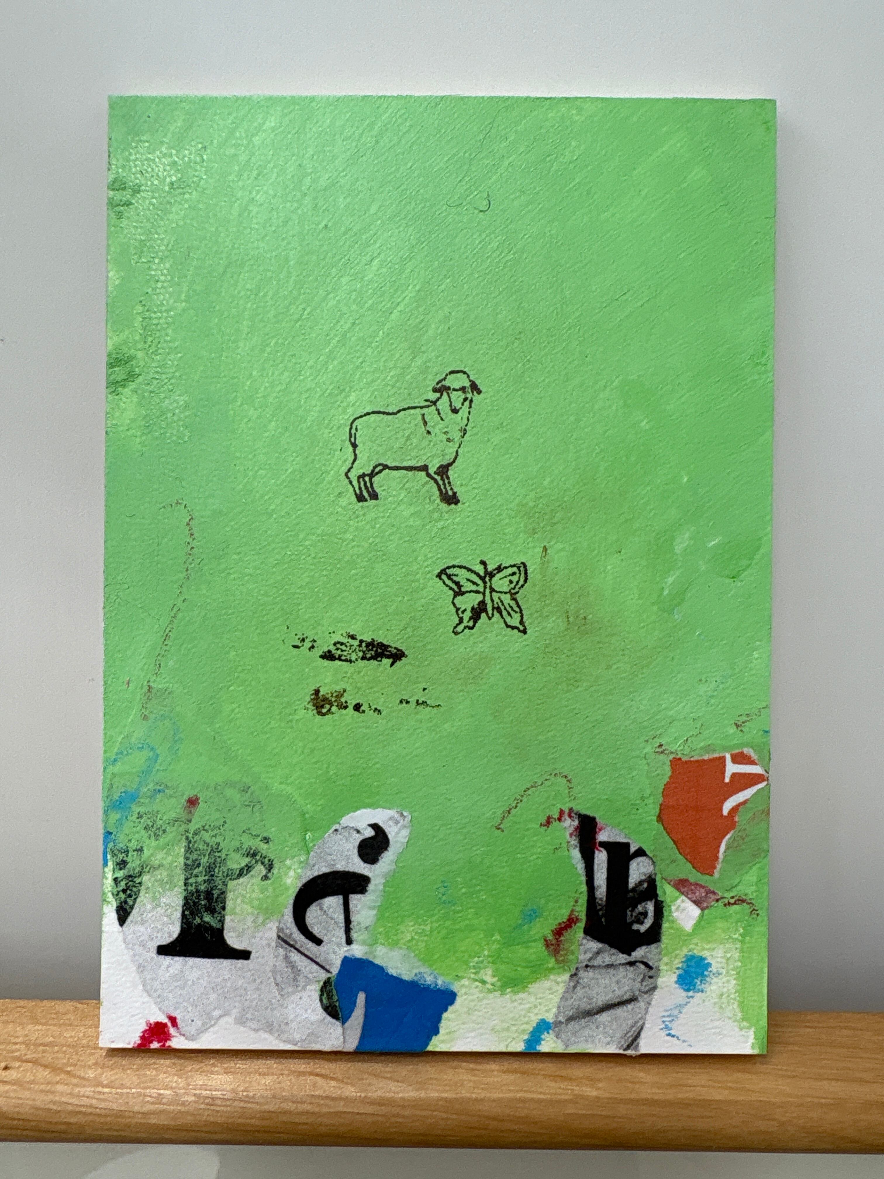 門馬則雄 A Spring Song 166×11mm 木板にアクリル絵具、ミクストメディア(シルクスクリーン、コラージュ、色鉛筆、オイルパステル)Acrylic mixed media on Wood 2024