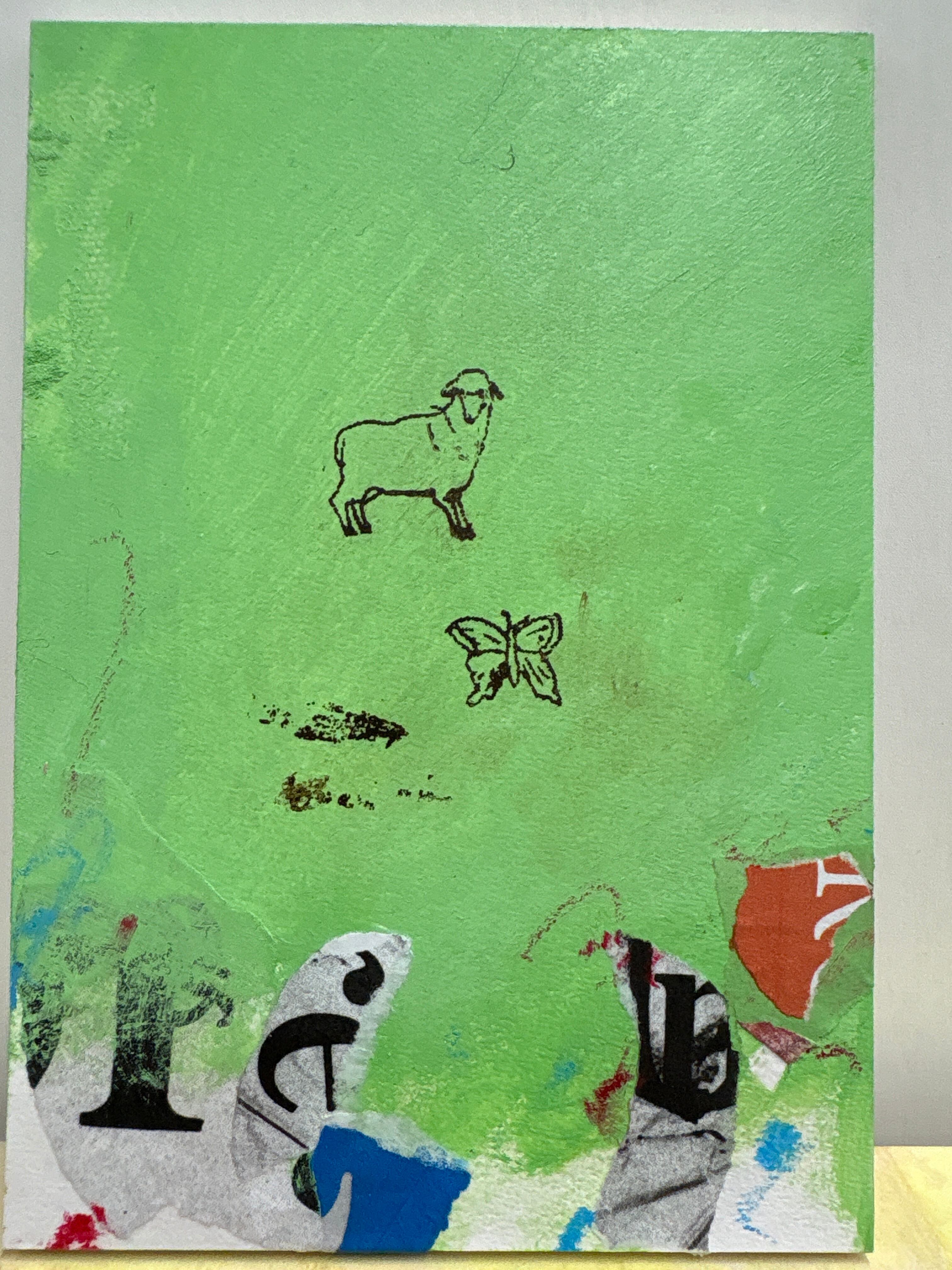 木板にアクリル絵具、ミクストメディア(シルクスクリーン、コラージュ、色鉛筆、オイルパステル)