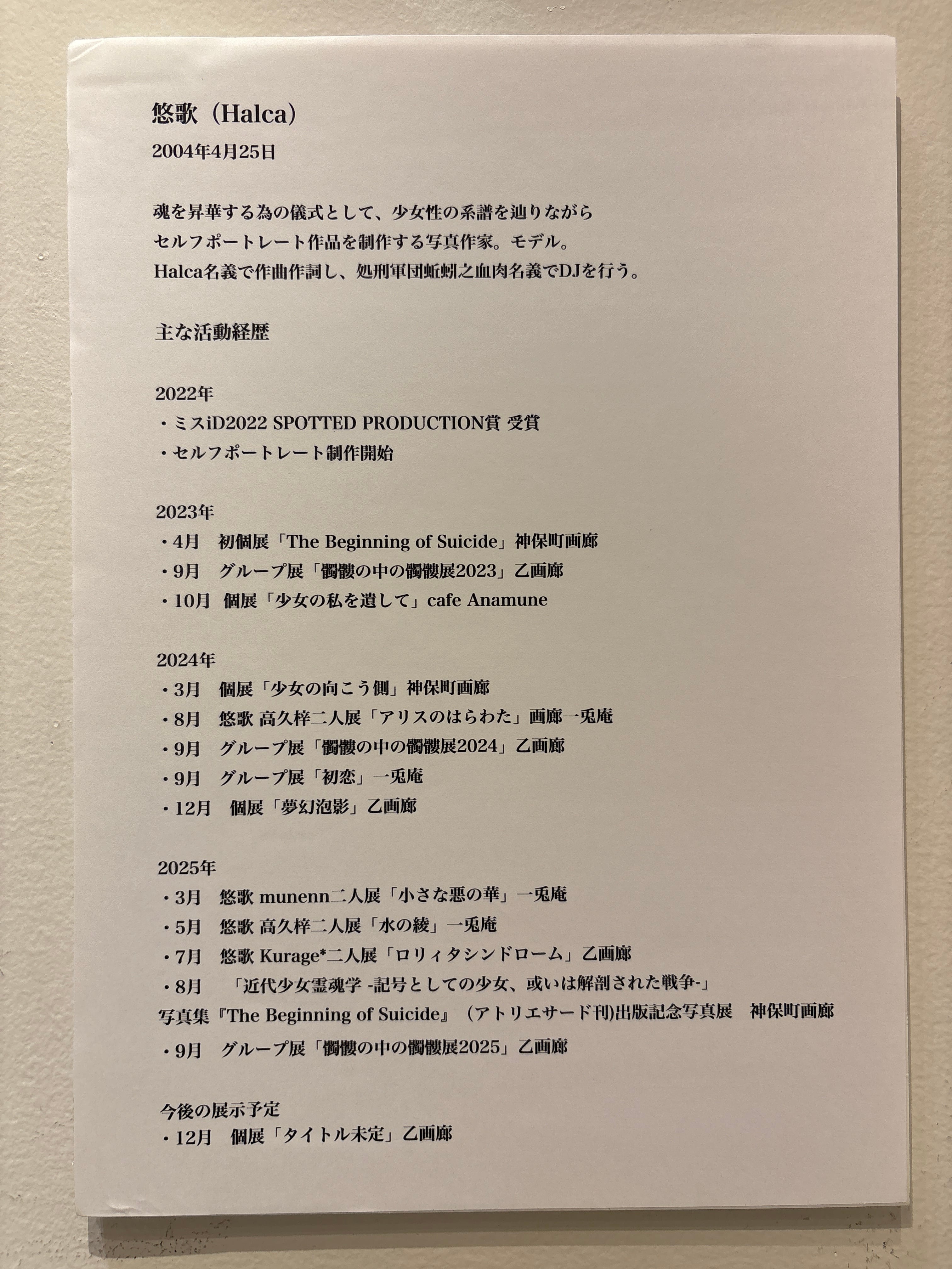 悠歌「どうしようもなく死にたくなった夜 私は淡水川のそばで涙を流した 天使なのにこの世に生まれてきてしまったんだ 成長には痛みが伴うの」 Self portrait 2025 241.5×329mm PICTORICO FINE ART SMOOTH シートのみ