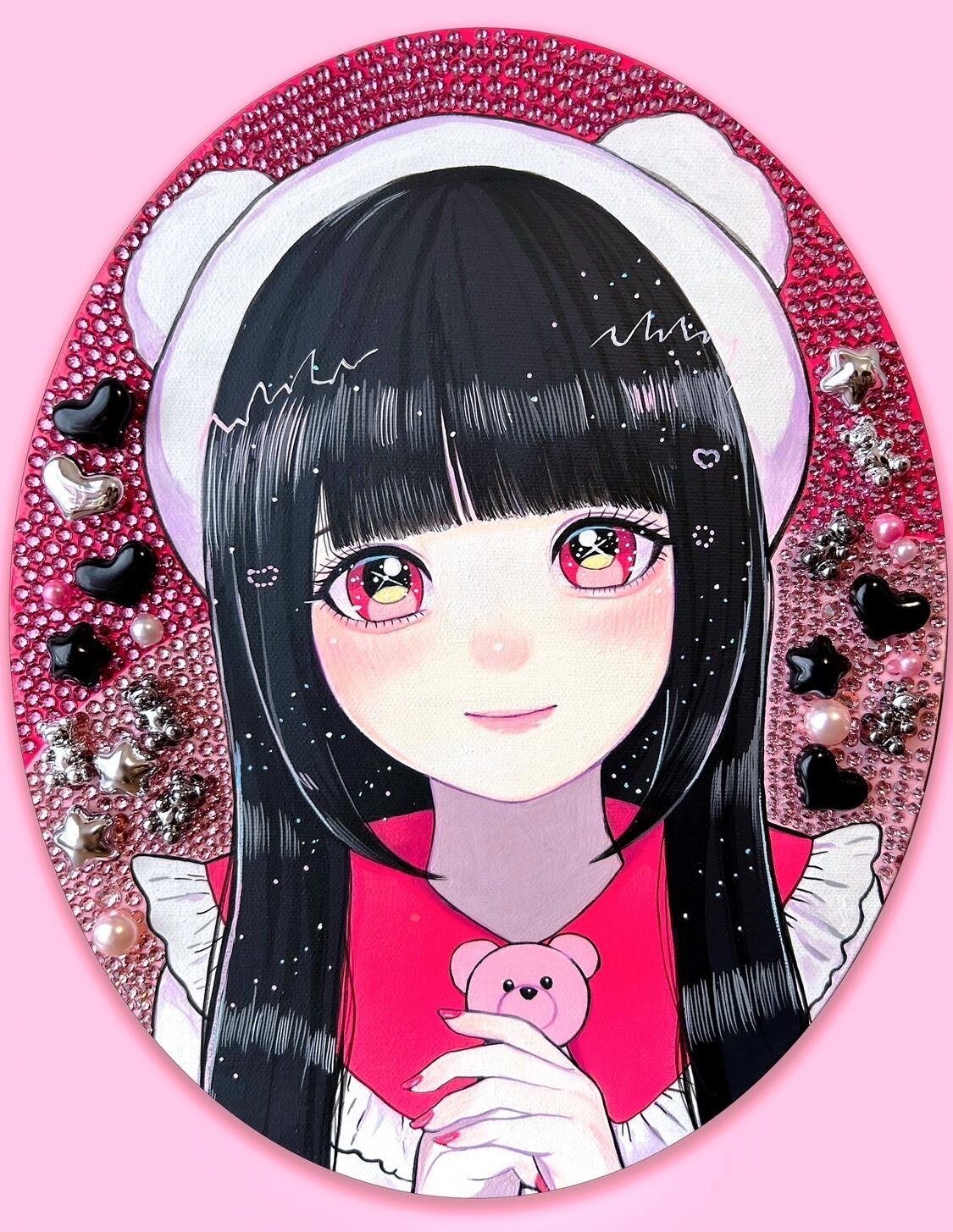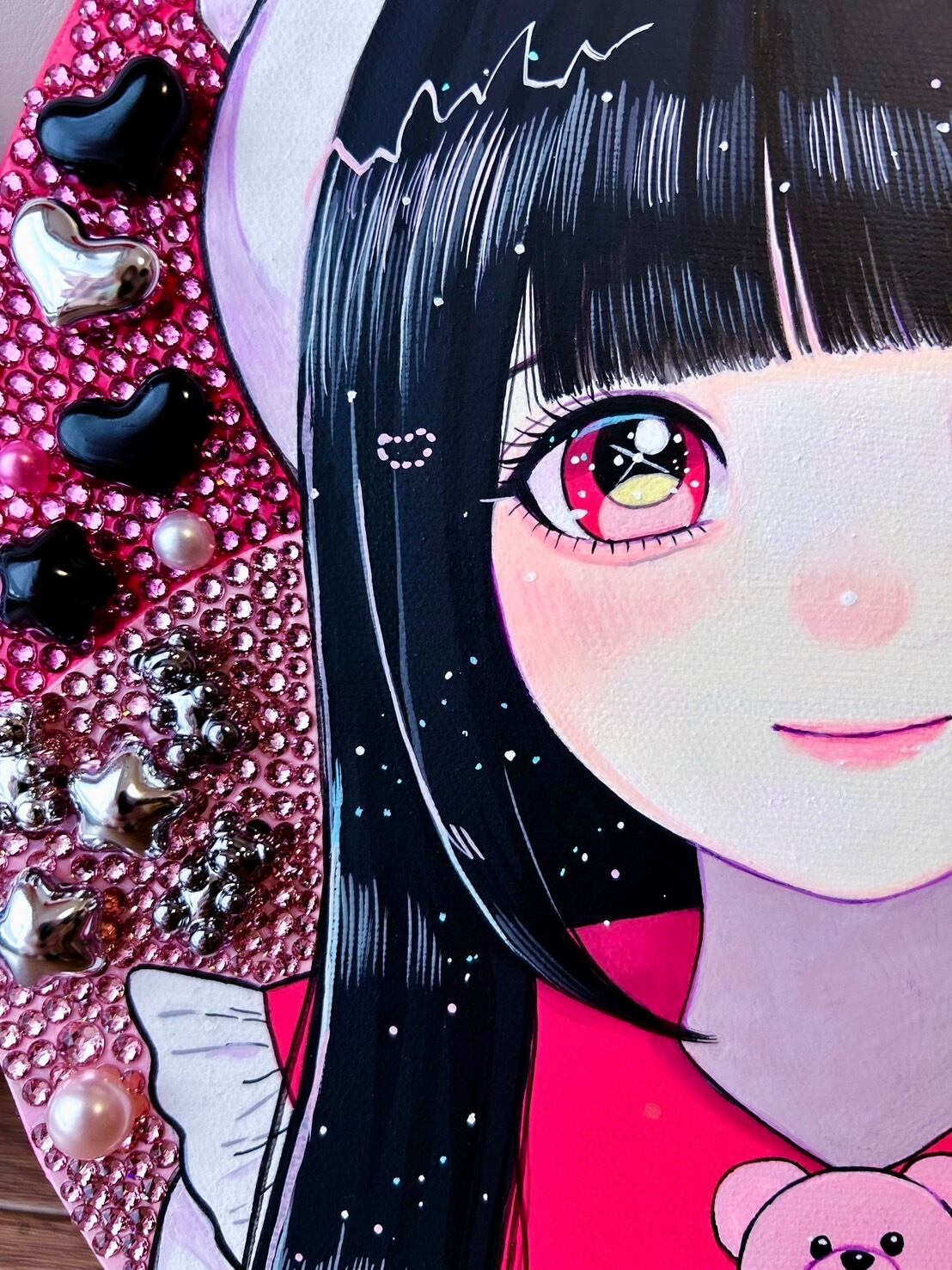 巽千沙都「キラキラレッドちゃん」330×240×2cm Acrylic paint Bijou parts medium on canvas 2025
