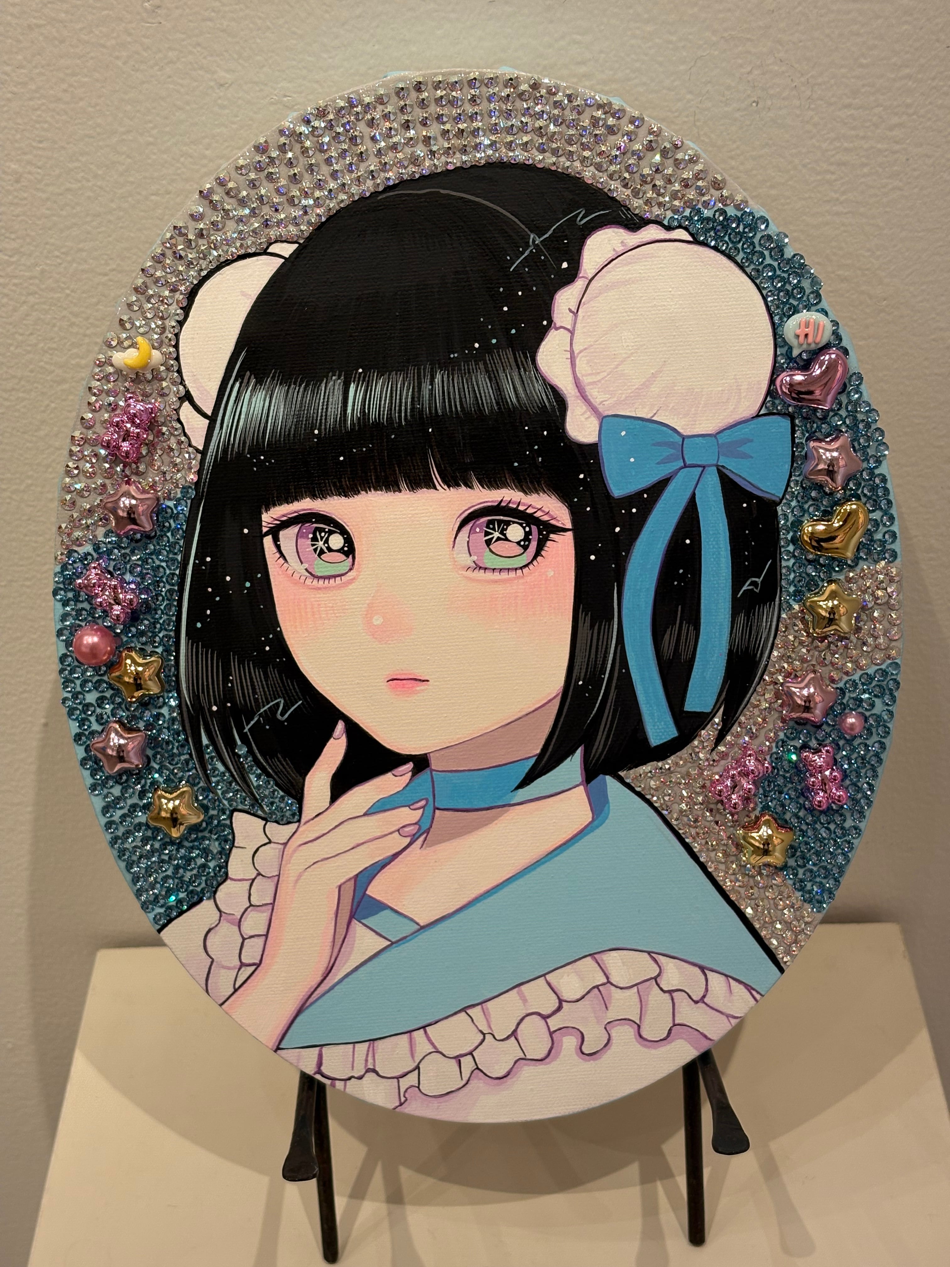 巽千沙都「キラキラファンシーちゃん」330×240×2cm Acrylic paint Bijou parts medium on canvas 2025