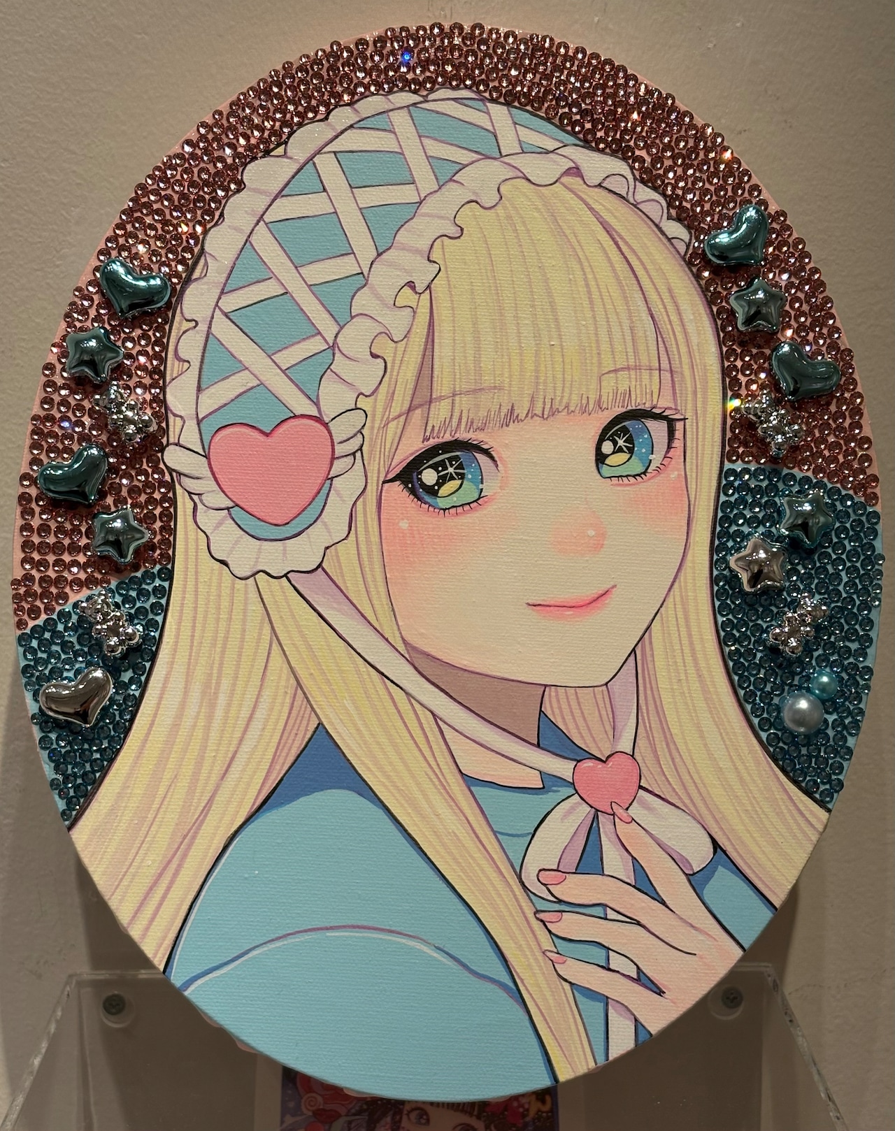 巽千沙都「キラキラライトブルーちゃん」330×240×2cm Acrylic paint Bijou parts medium on canvas 2025