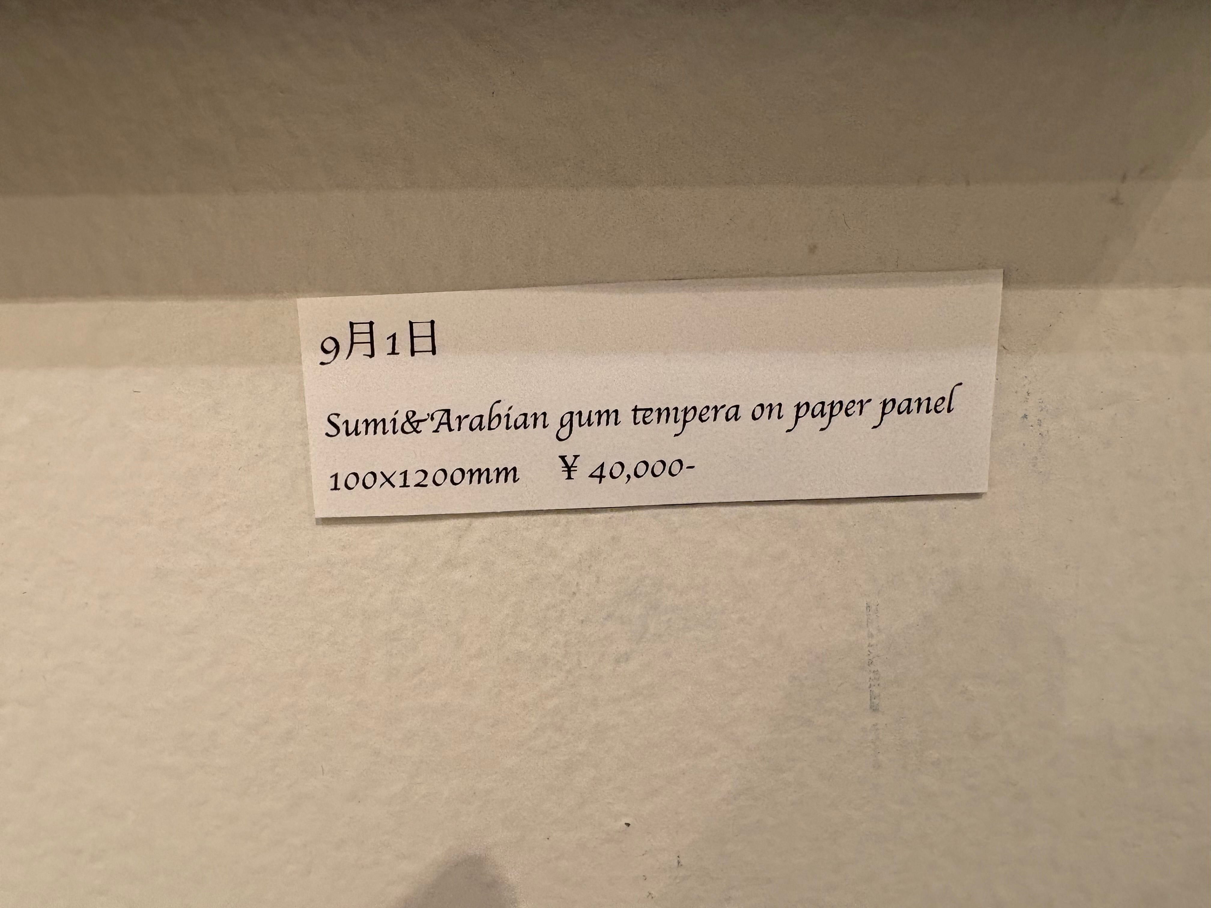 桝谷友子「9月1日」 100×1200mm Sumi&Arabian gum tempera on paper panel 2025