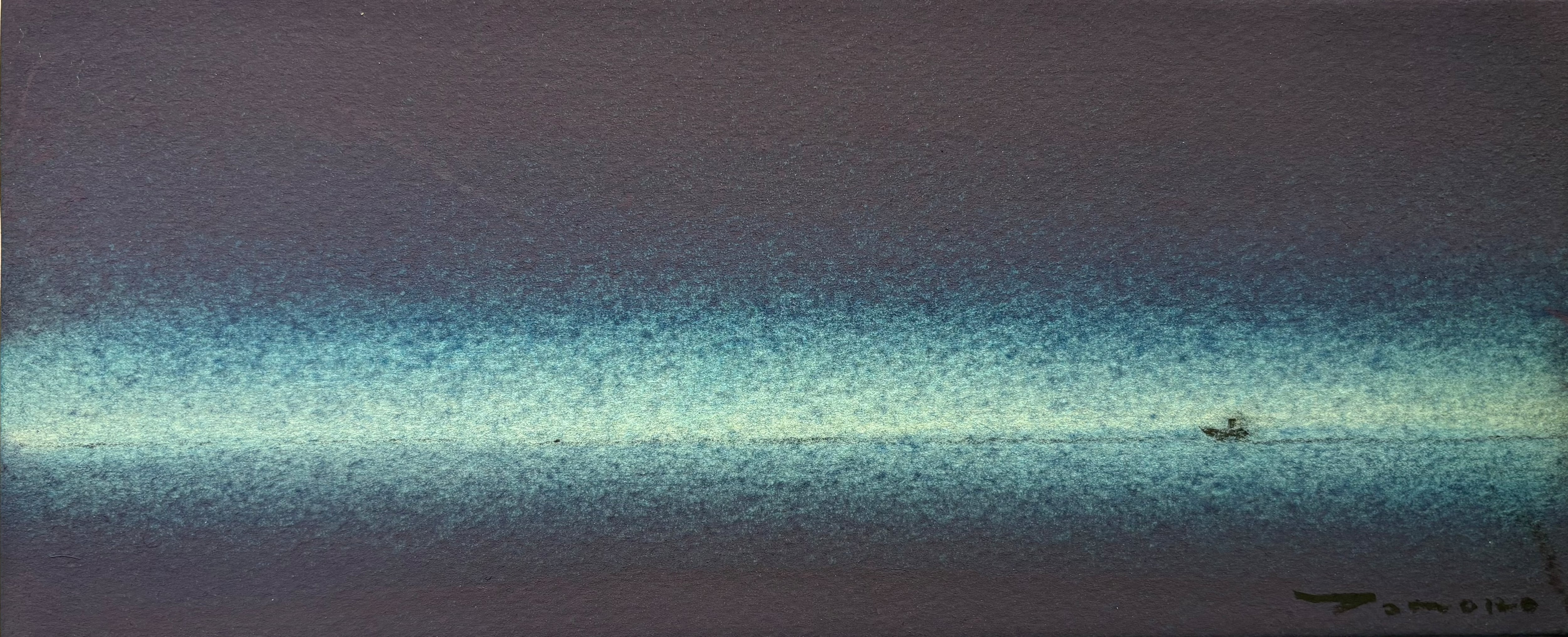 桝谷友子「10月6日」 100×245mm Sumi&Arabian gum tempera on paper panel 2025