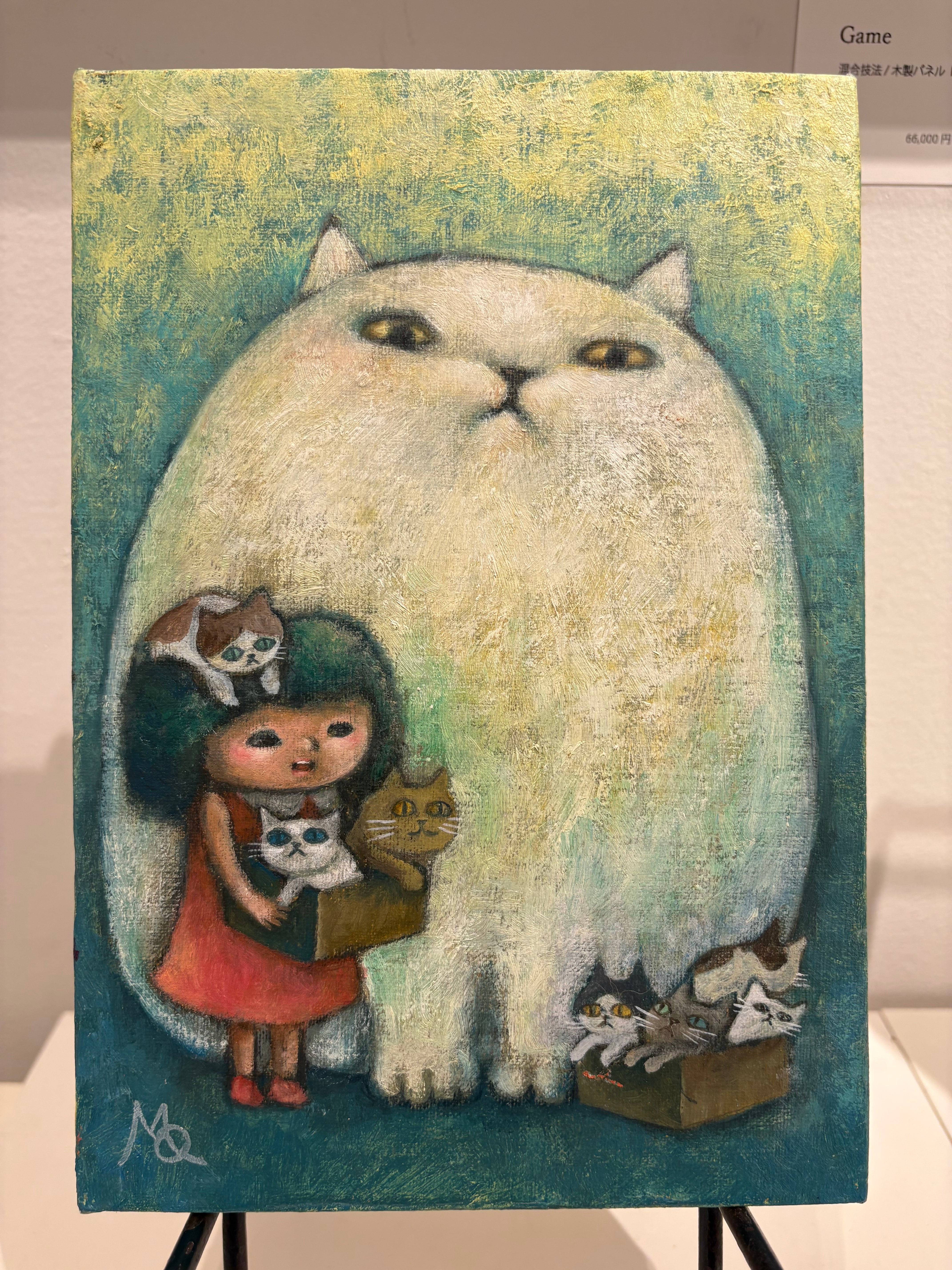 小田島正恵「すてねこがいっぱい」SM 木製パネルにキャンバス、油彩画