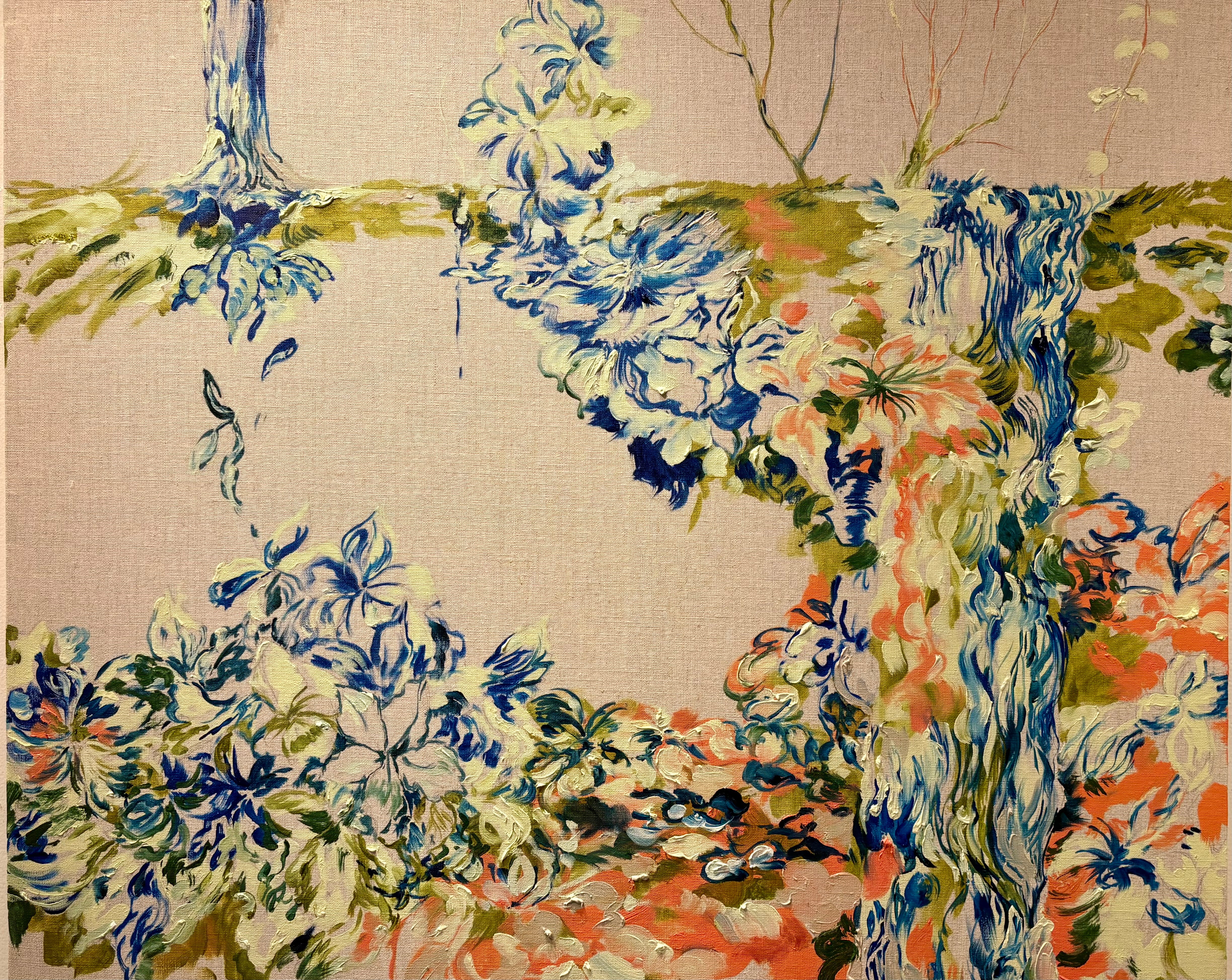 葉々とそれらを支える樹木の質感・有機的で独特な形態を出発点に、絵画独特の空間を描き留めていく。