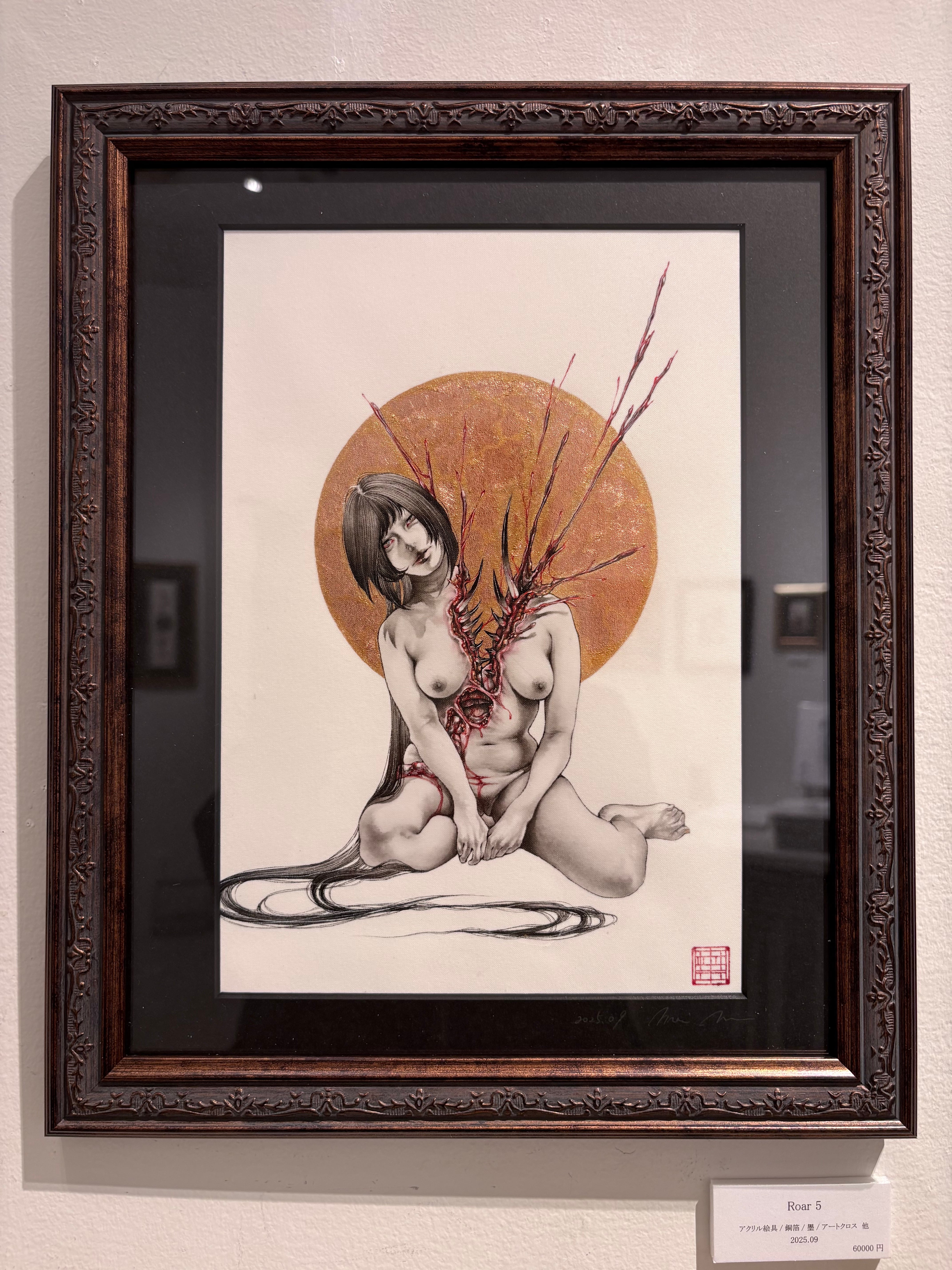 冥麿「Roar 5」額付き アートクロス紙ににアクリル絵具、銅箔、墨