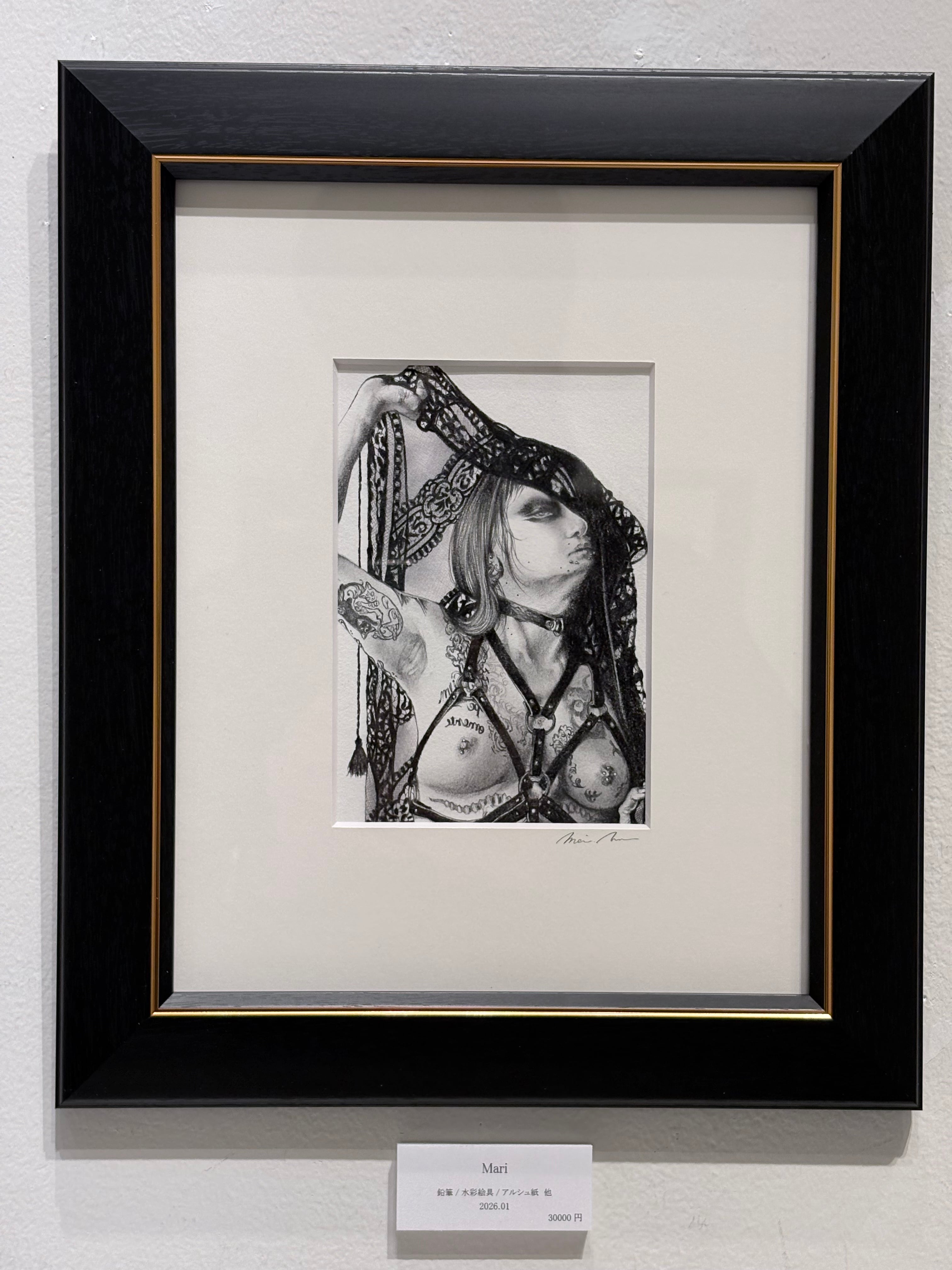 冥麿「Mari」額付き アルシュ紙に鉛筆、水彩絵具