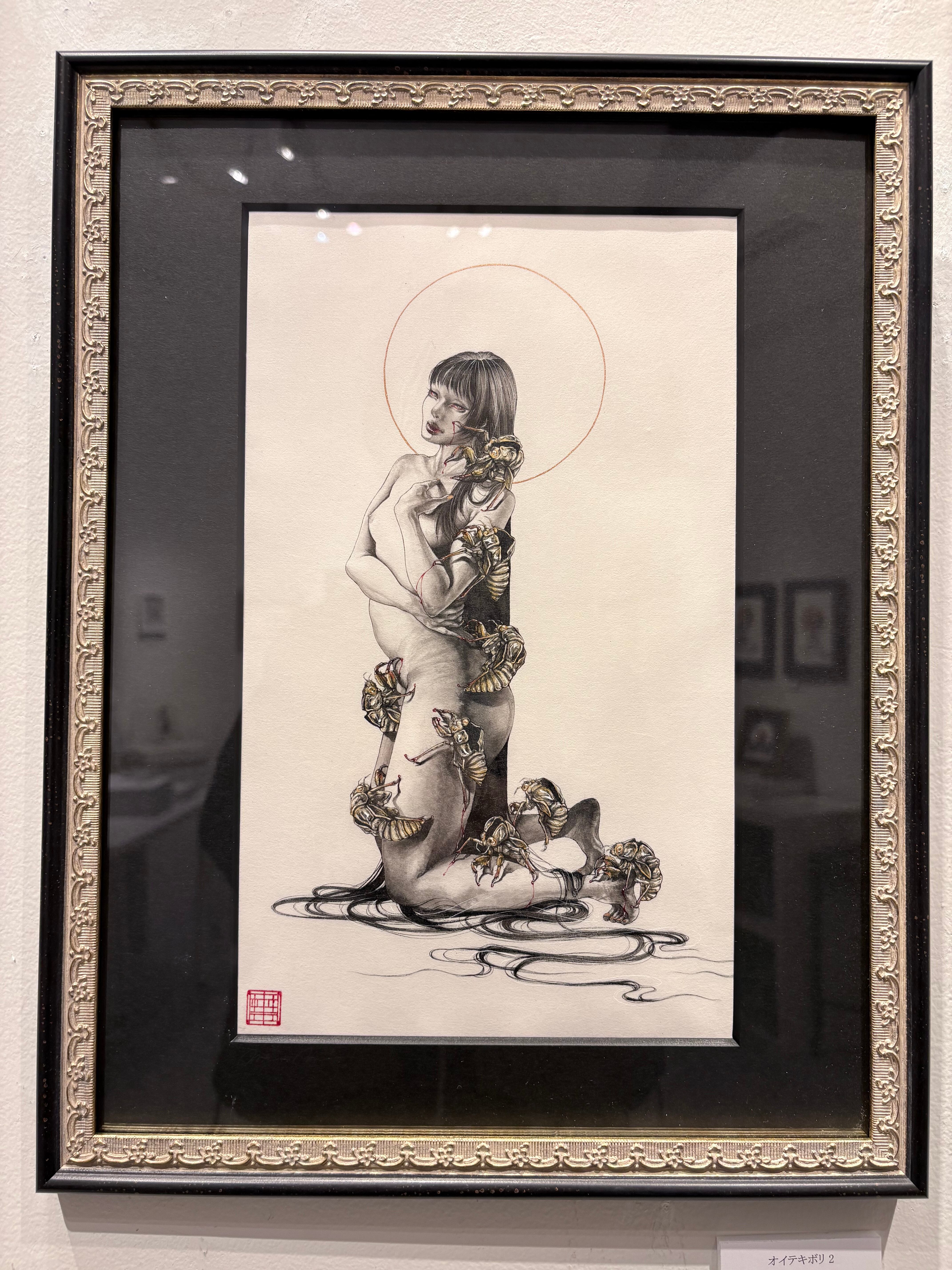 冥麿「オイテキボリ 2」額付き 楮紙にアクリル絵具、墨
