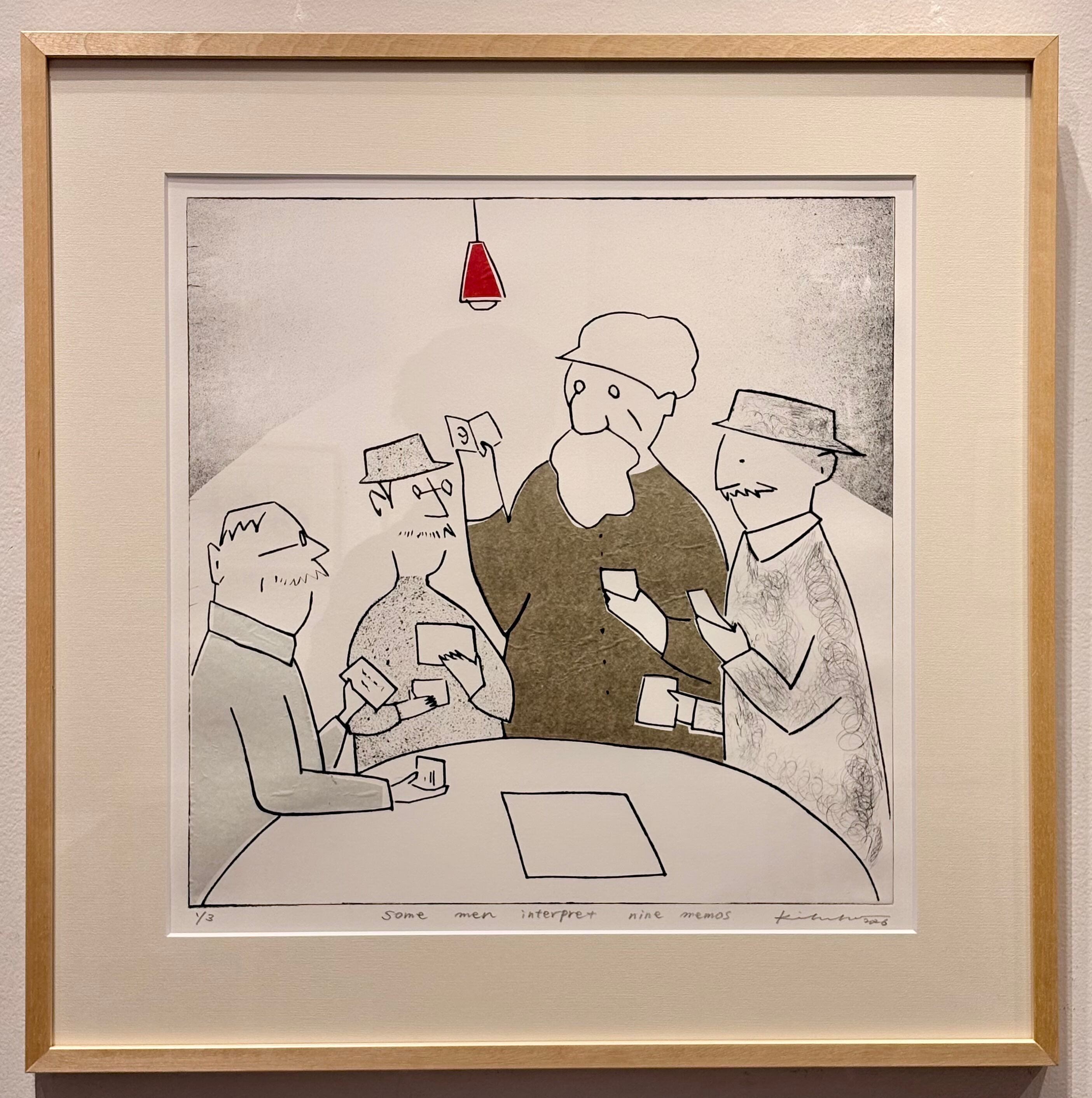 大坪紀久子 「some men interpret nine memos」 イメージサイズ 45.5×45㎝ 紙(izumi) に塩ビ板版画 ed.3 額付き(60×60cm) 2026年