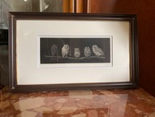 山城有未「owl cafe」 銅版画 メゾチント 額付き(20.5×35cm)