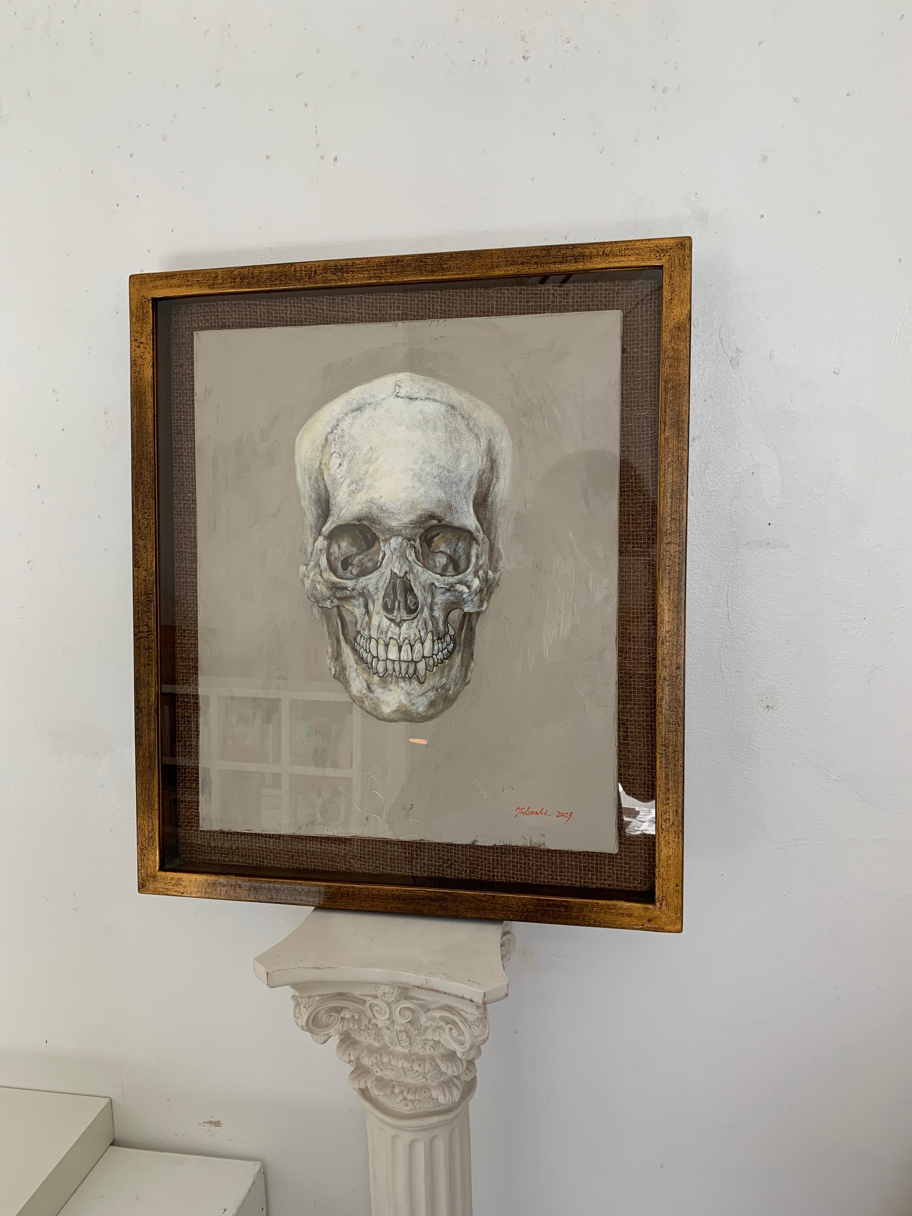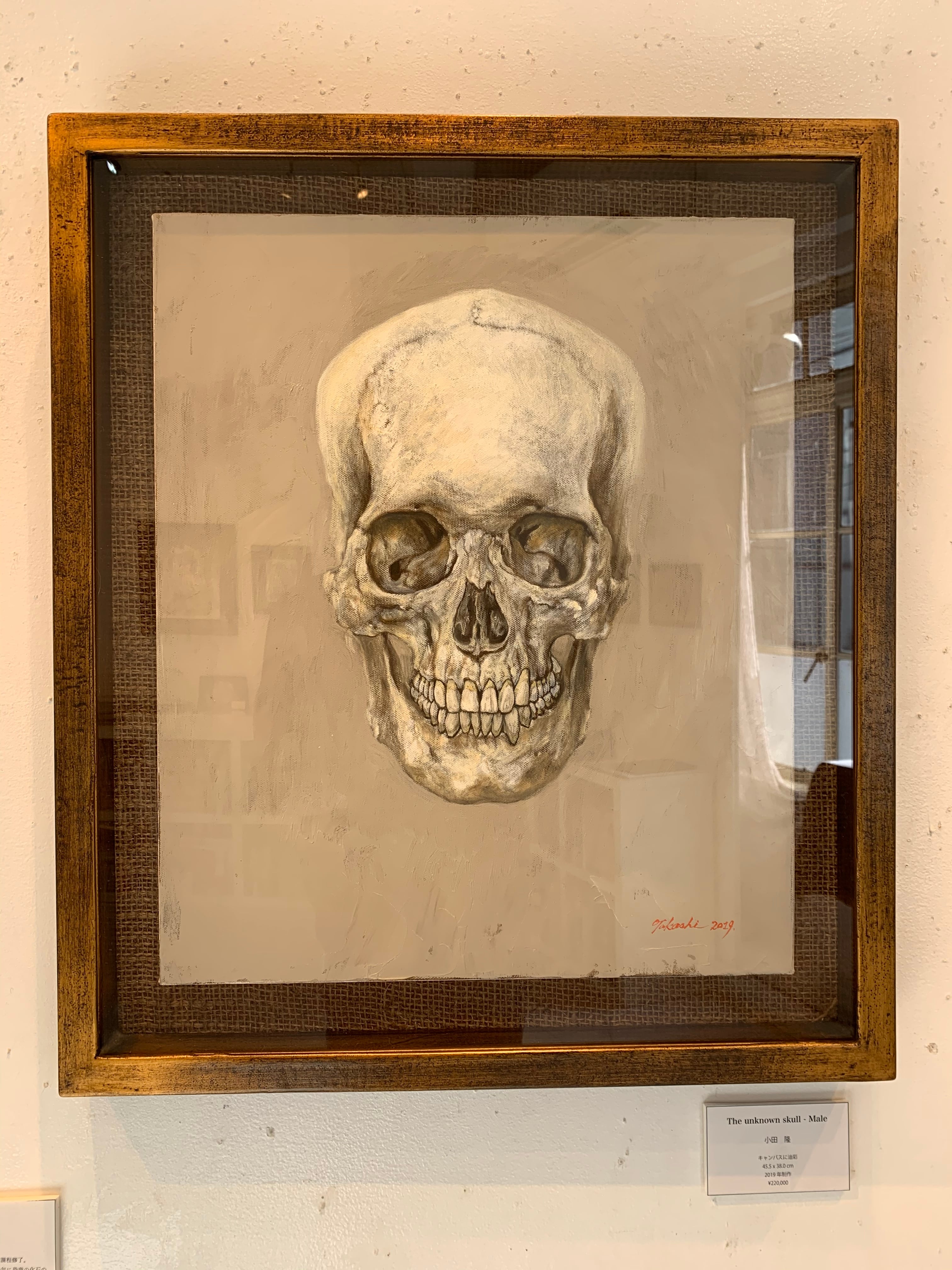 →2枚目写真の右側の作品です。左には対とも言うべき女性のスカル作品が見えます。