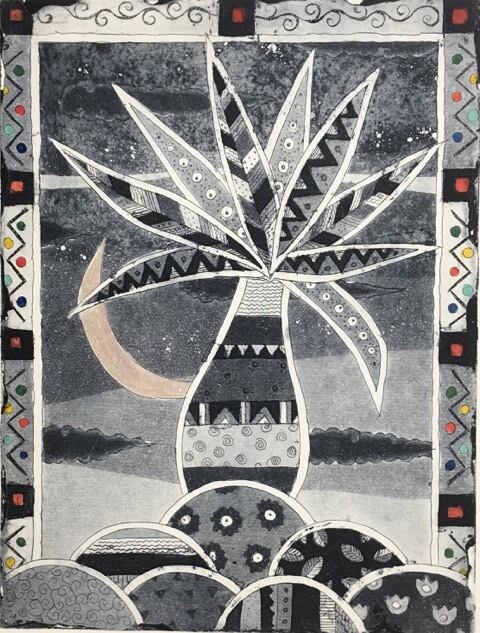 朝日みお 「銀の月と1本の木」イメージ20×15cm /(B-15) ed35 額装込み