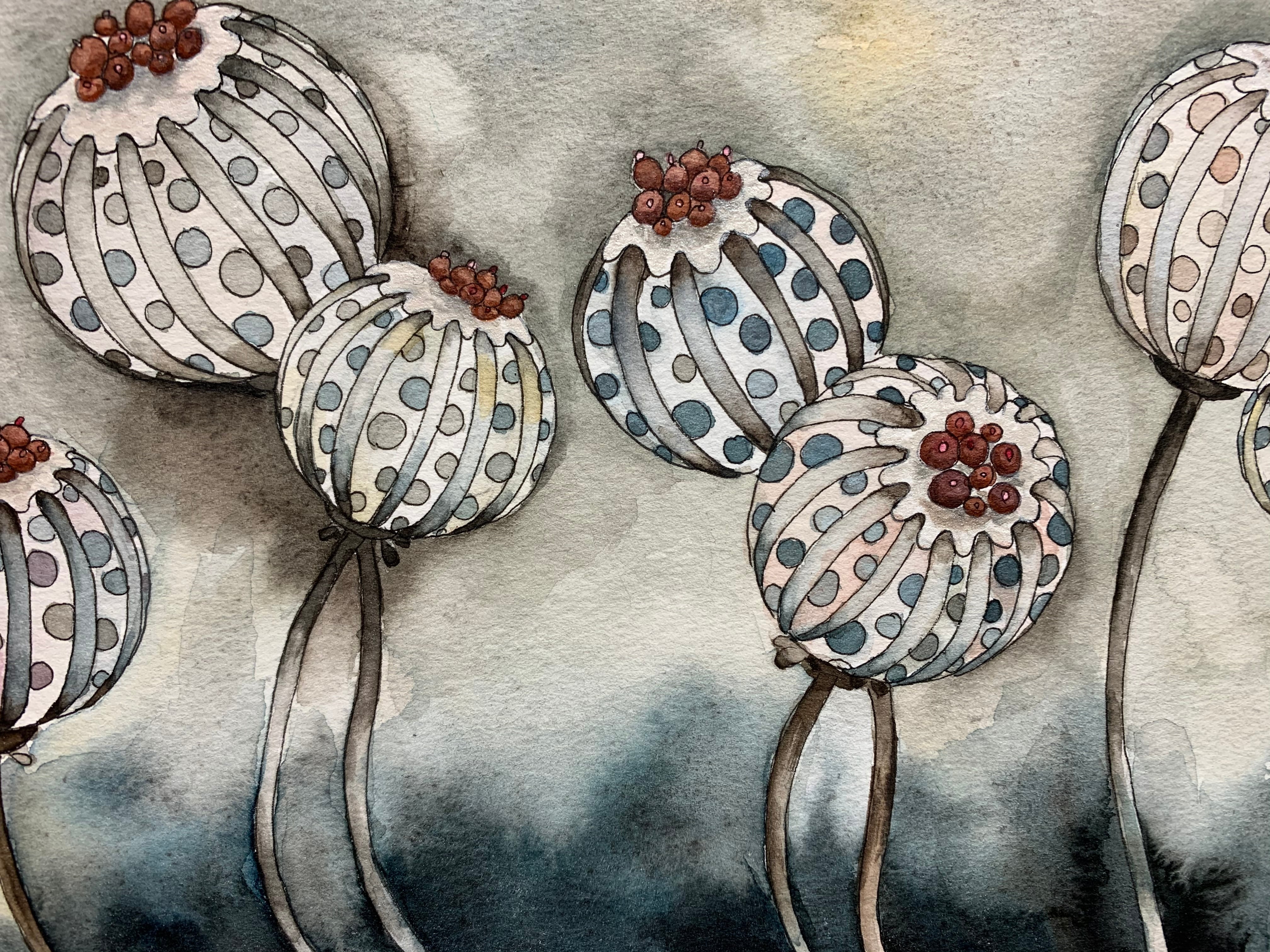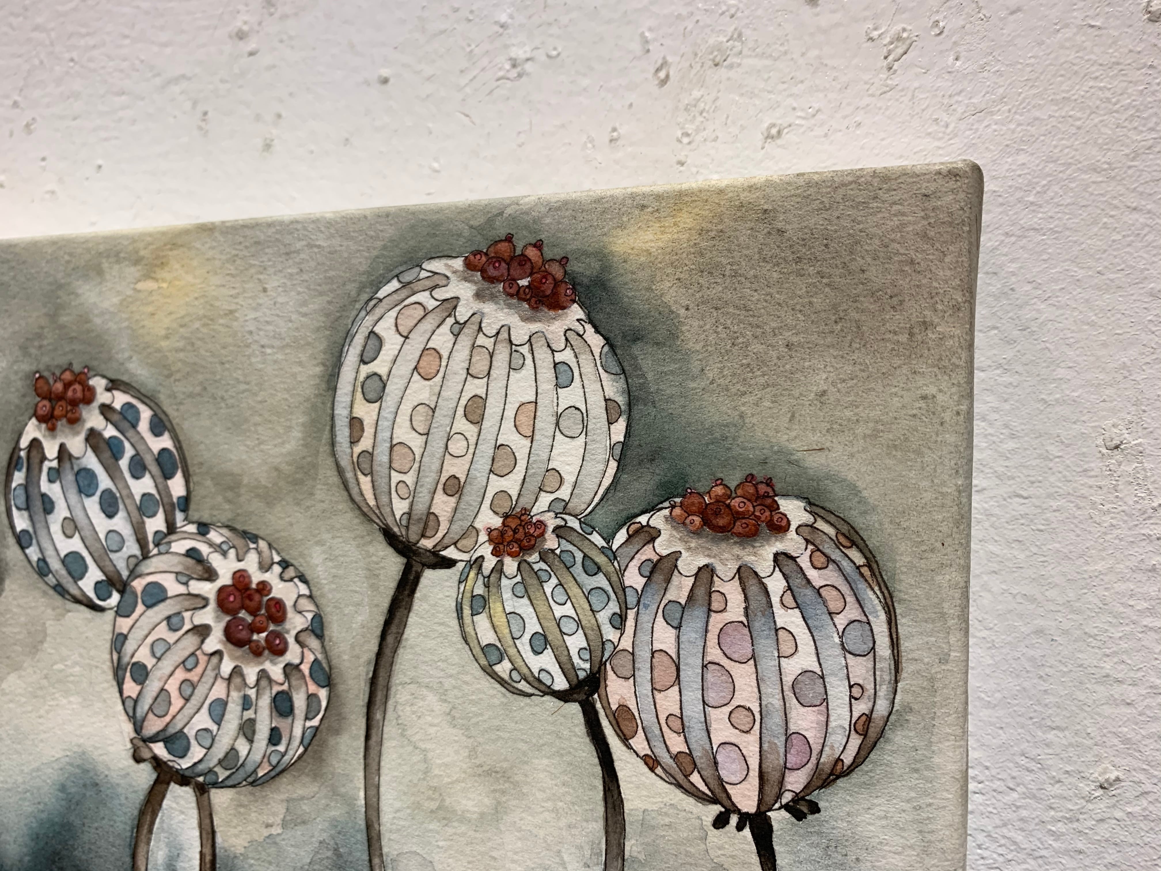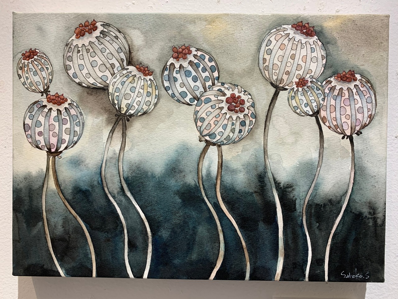 新家智子「Extend」18.5×26cm パネルに和紙、透明水彩