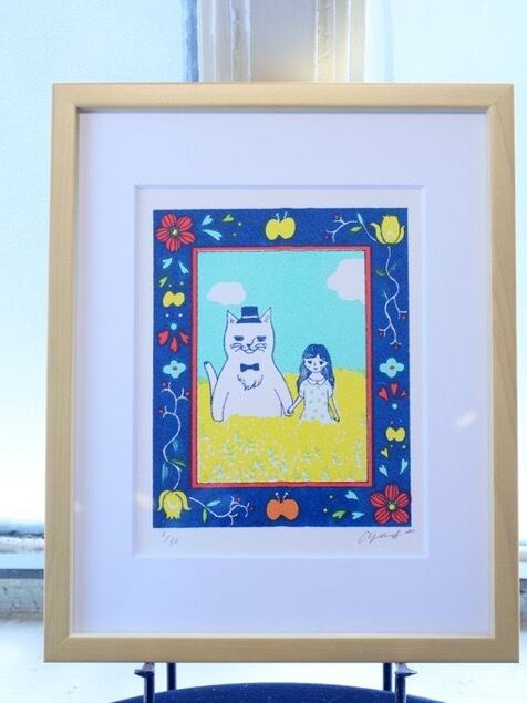 佐藤文音16「芋虫は世界が終わると知った時、蝶になる。」シルクスクリーン15×12cm/ed.30額付き