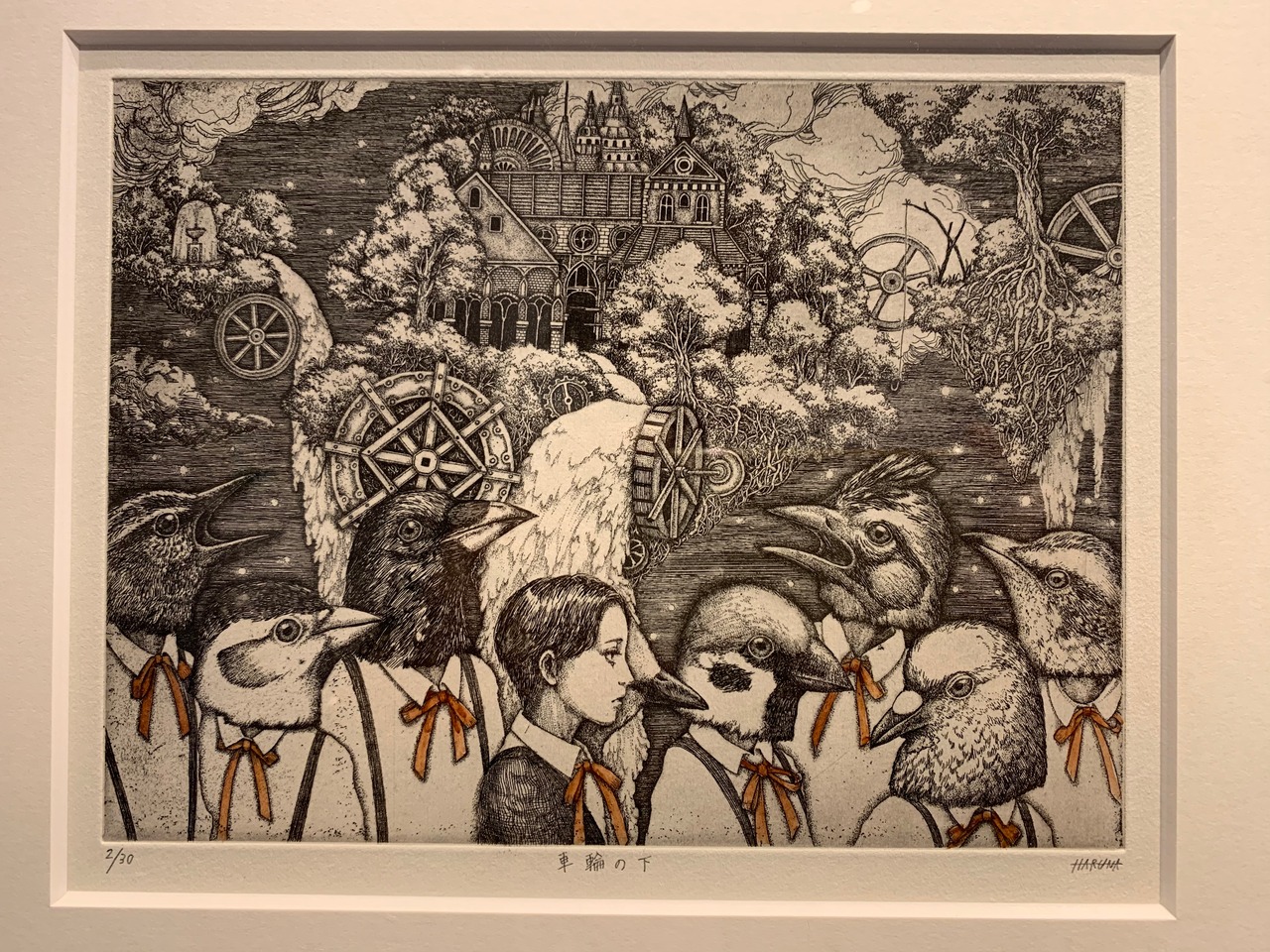 木村遥名「車輪の下」150×200mm etching ed.30 額付
