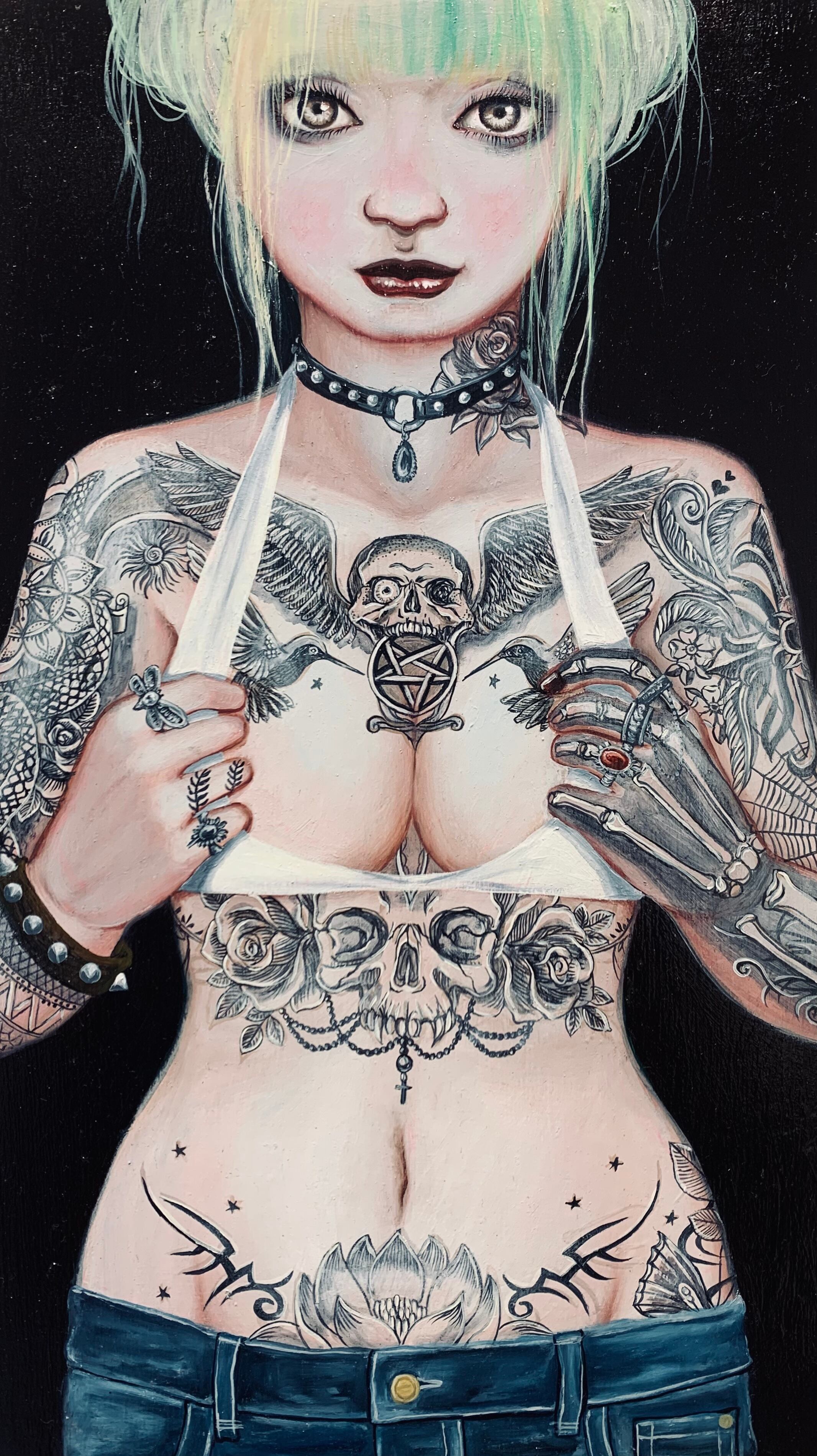 山際マリ「Backgammon」 333×190mm(M4)パネルに油彩2022
