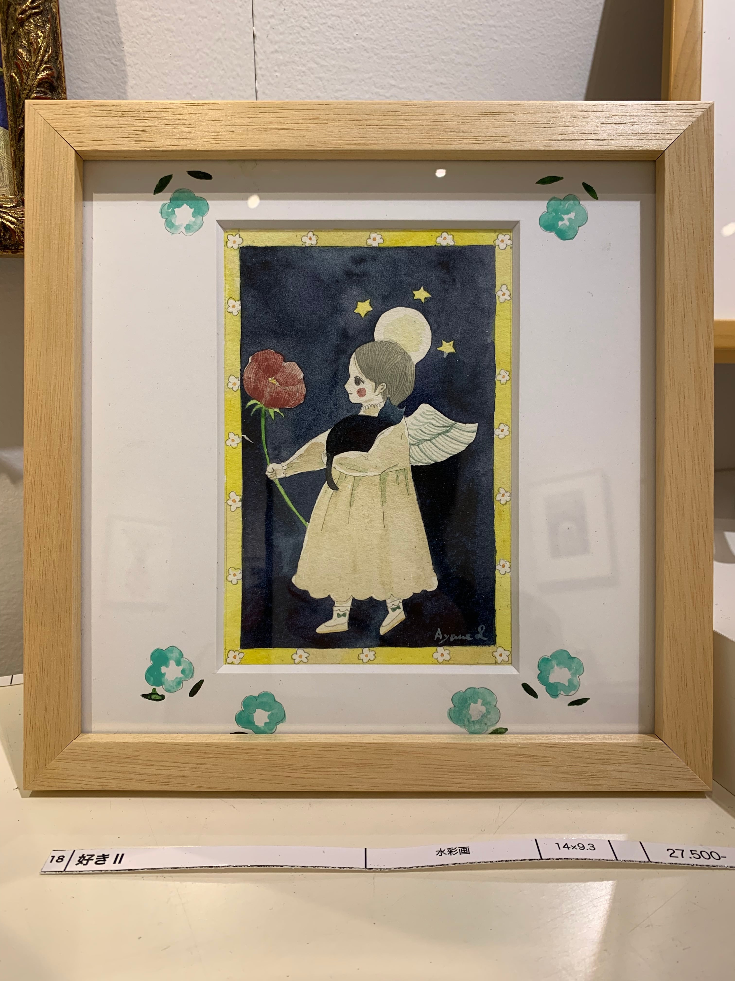 佐藤文音18a「好き Ⅱ」水彩画 14×9.3cm 額付き