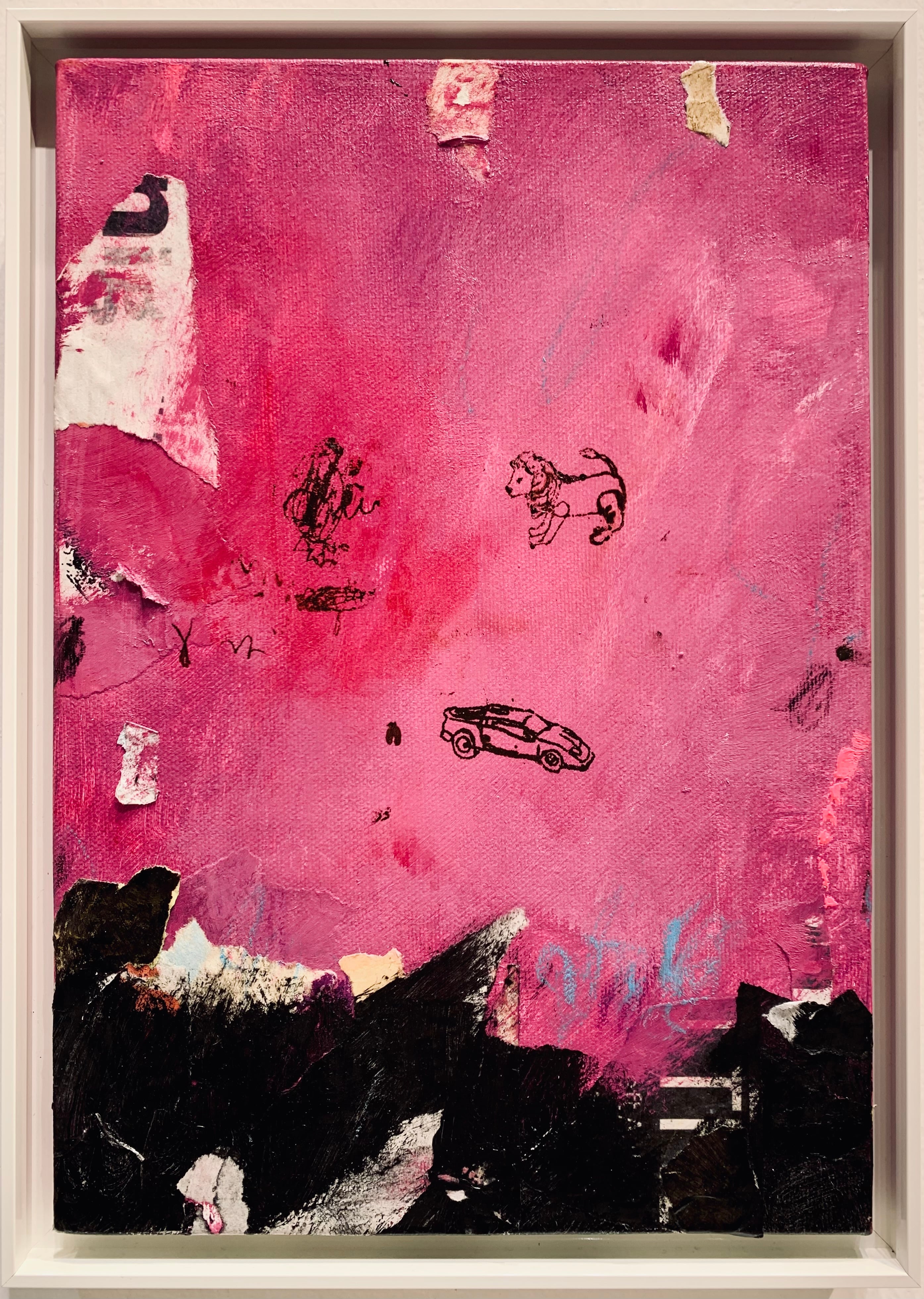 門馬則雄[25] Little Song Ⅱ 273×190mm キャンバスにアクリル絵具、ミクストメディア(シルクスクリーン、コラージュ、色鉛筆、オイルパステル)Acrylic mixed media on Canvas 額付き