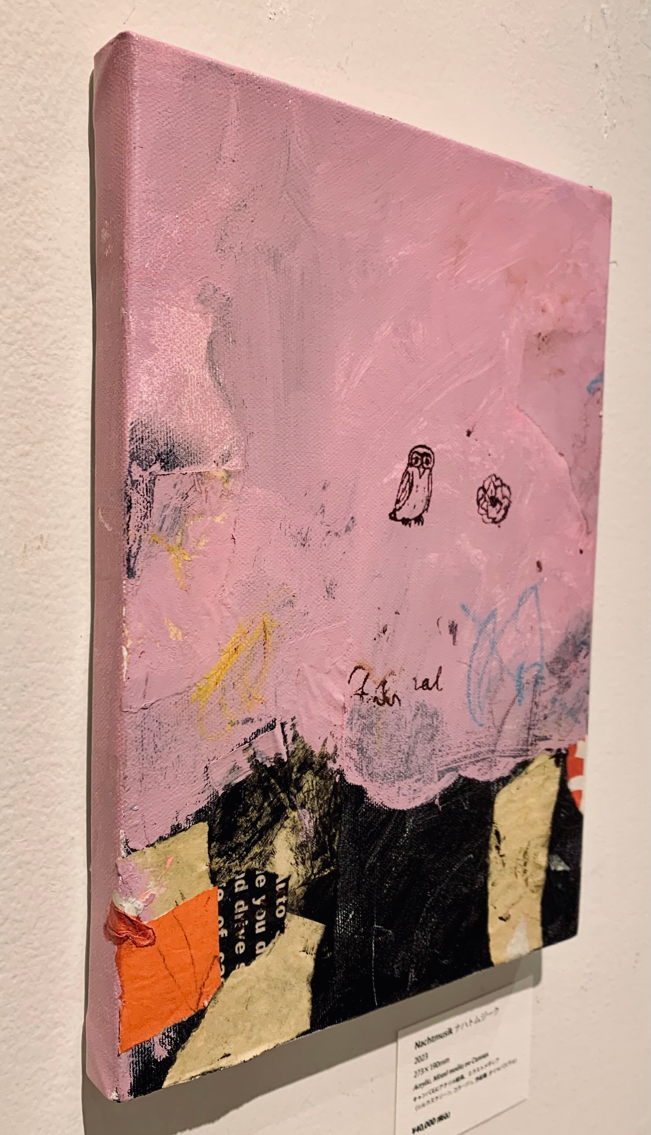 門馬則雄[27] Nachtmusik ナハトムジーク 273×190mm キャンバスにアクリル絵具、ミクストメディア(シルクスクリーン、コラージュ、色鉛筆、オイルパステル)Acrylic mixed media on Canvas