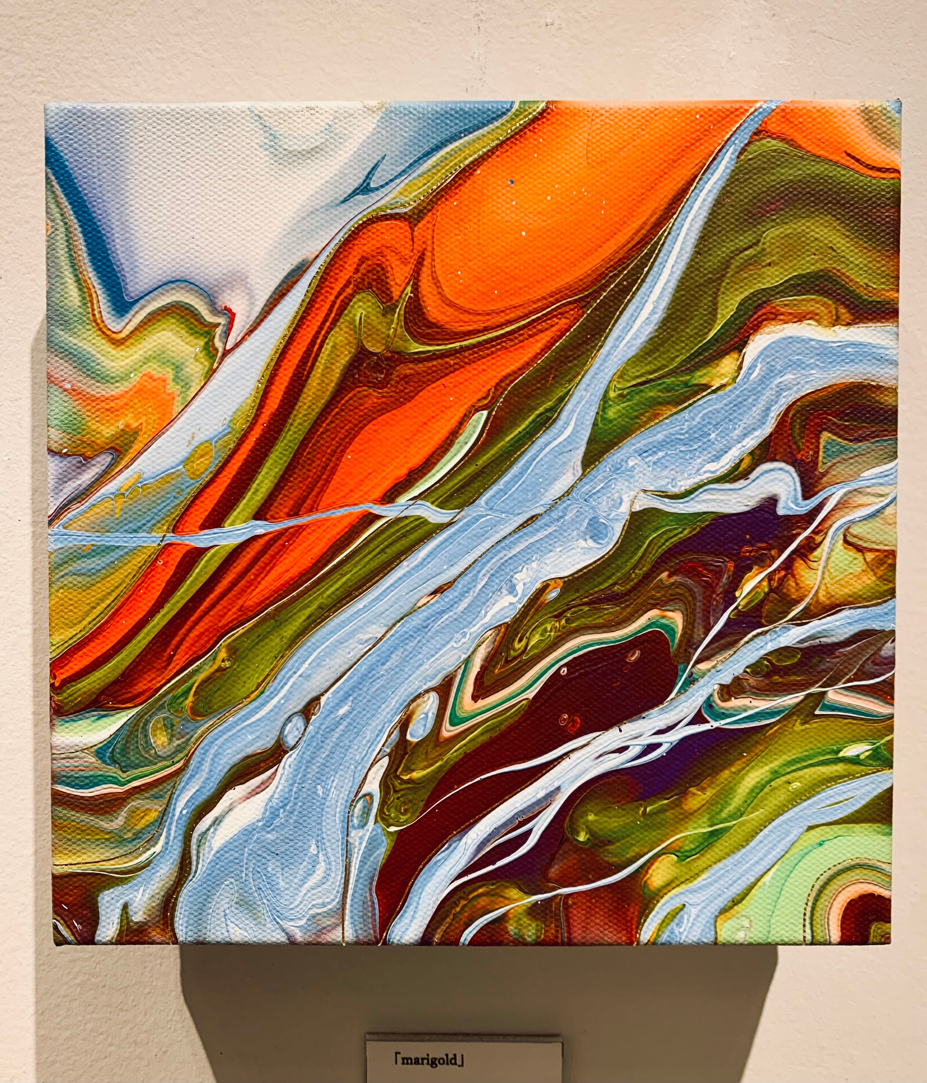 madoka 「marigold」 200×200mmAcrylic and gold leaf on canvas キャンバスにアクリル、メディウム、截金(金箔) 2023